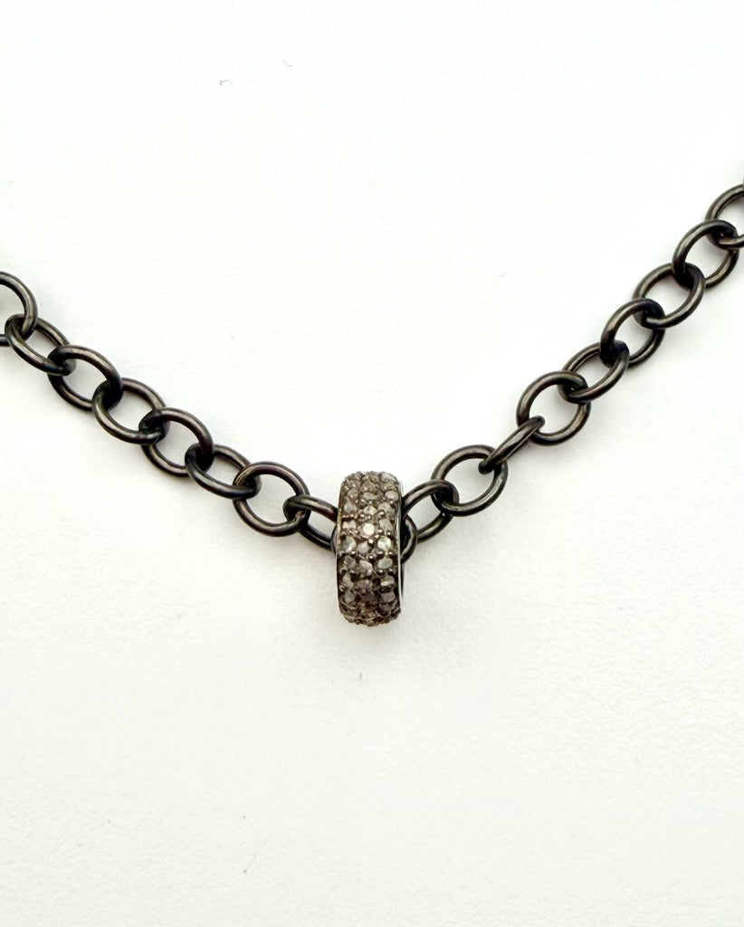 10mm Sterling Silver Diamond Rondelle on Rhodium Cable Chain, 18"
