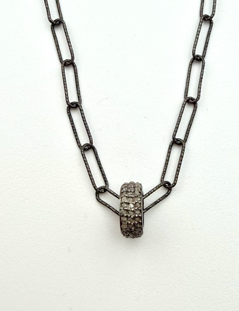 10mm Triple Diamond Row Sterling Silver Rondelle on Rhodium Diamond Cut Chain, 16"