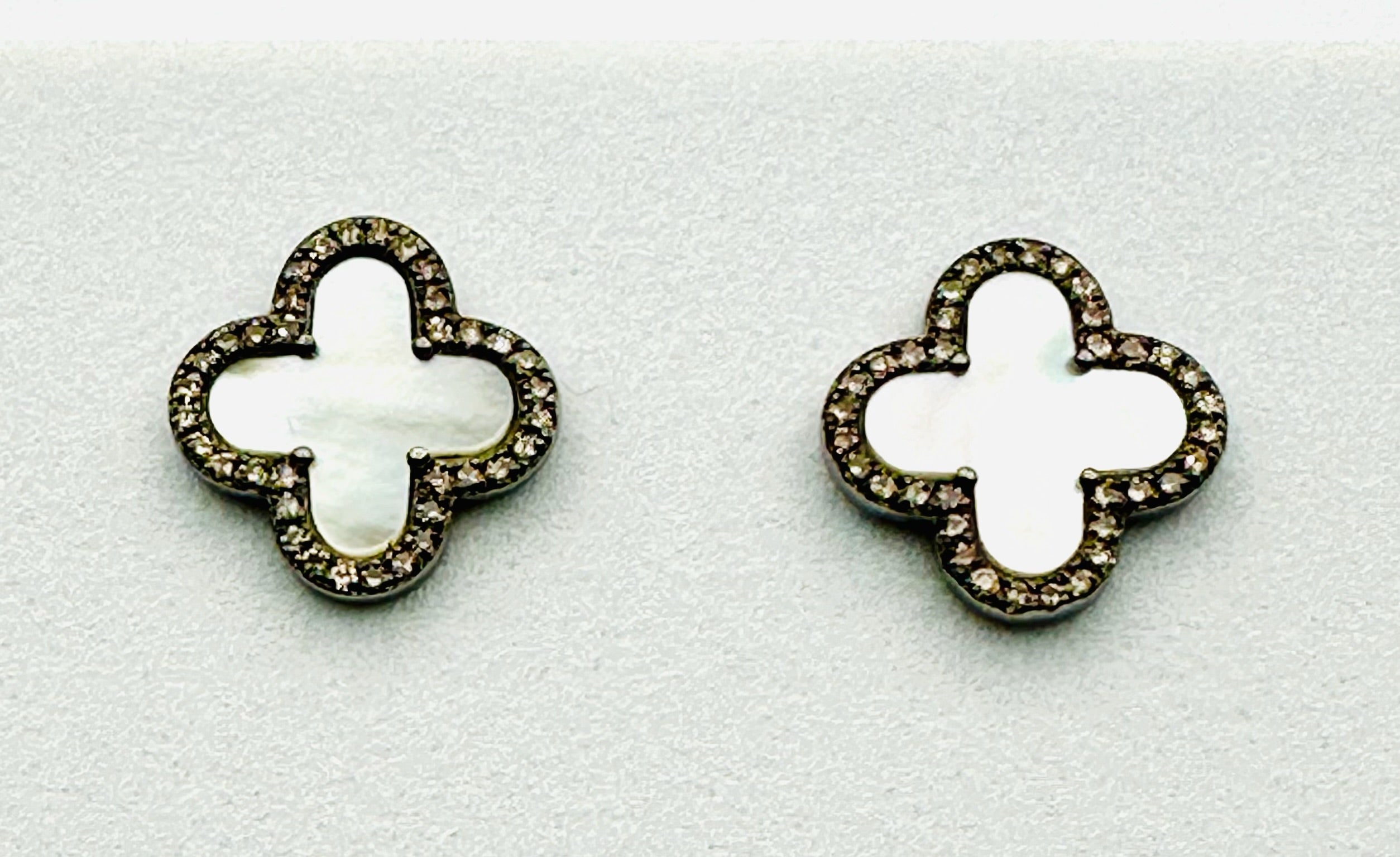 12mm Mother Of Pearl Diamond Clover Post Earrings with Sterling Silver .5"