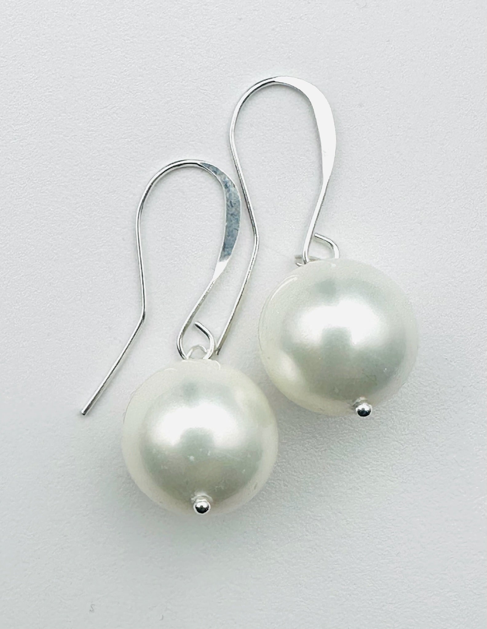 14mm Round White Mother of Pearl Earring with Sterling Silver French Hooks, 1.5"