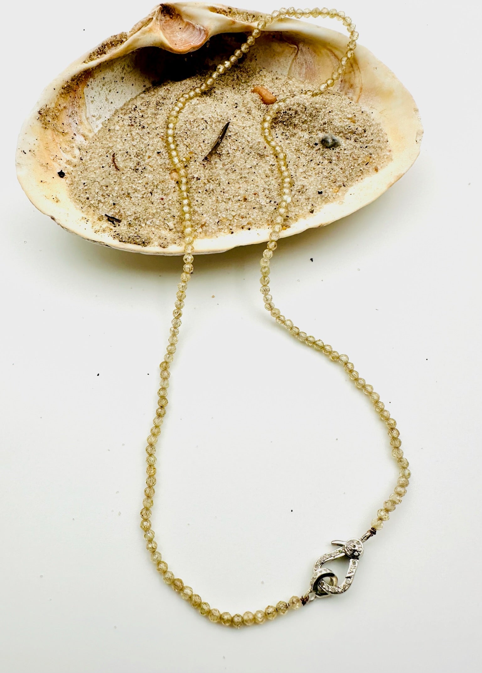 2mm Faceted Champagne Zircon Necklace with Sterling Silver Diamond Teardrop Shaped Clasp, 15.5" length