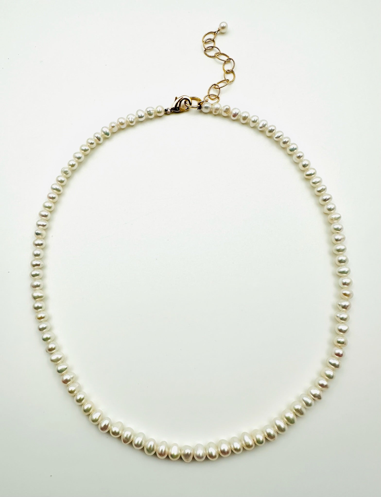4mm White Freshwater Pearl Necklace with Gold Fill Clasp, 16" length