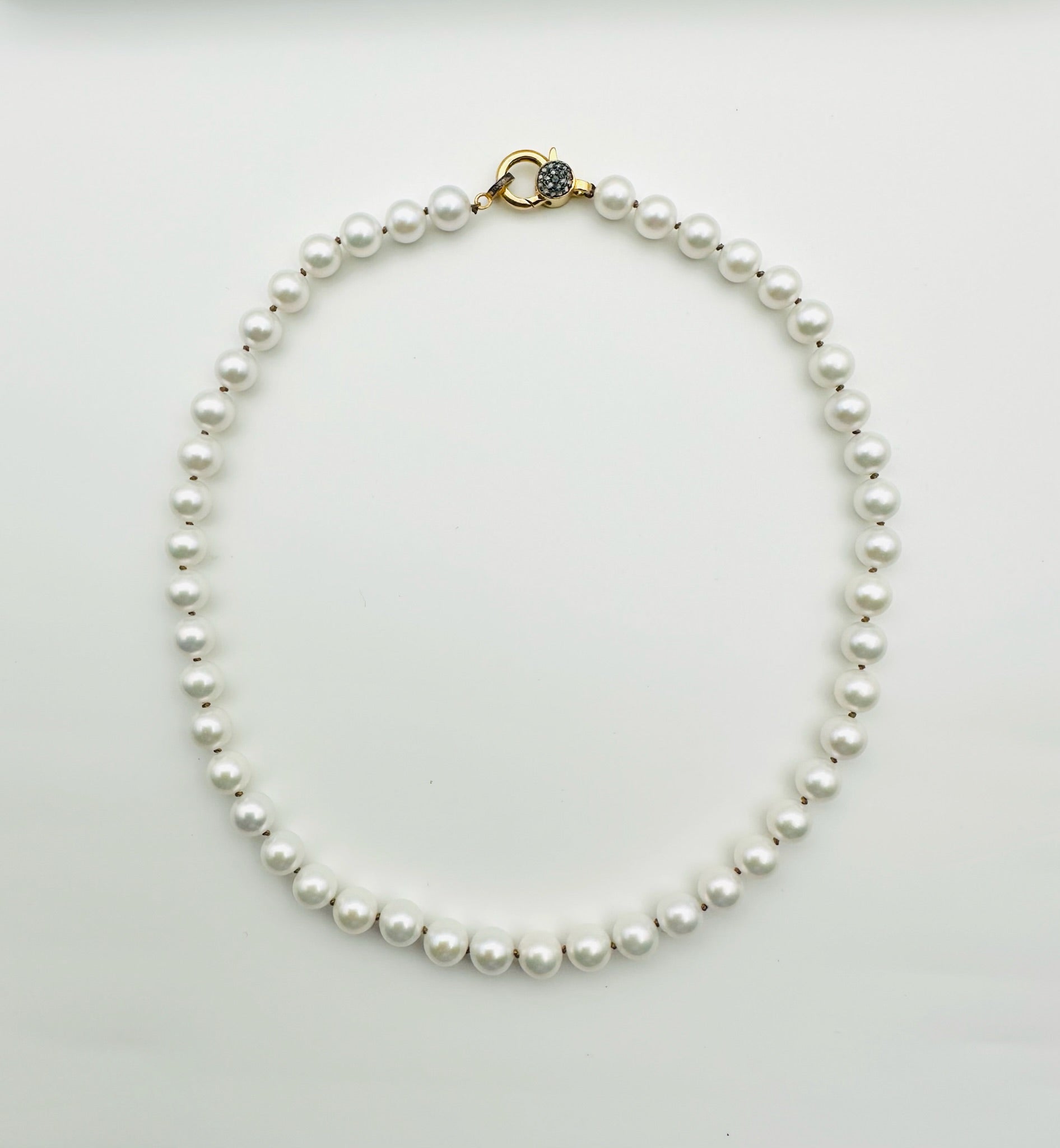 8mm Akoya Pearl Necklace, Gold Vermeil, 18k/sterling silver Diamond Clasp, 16" Length
