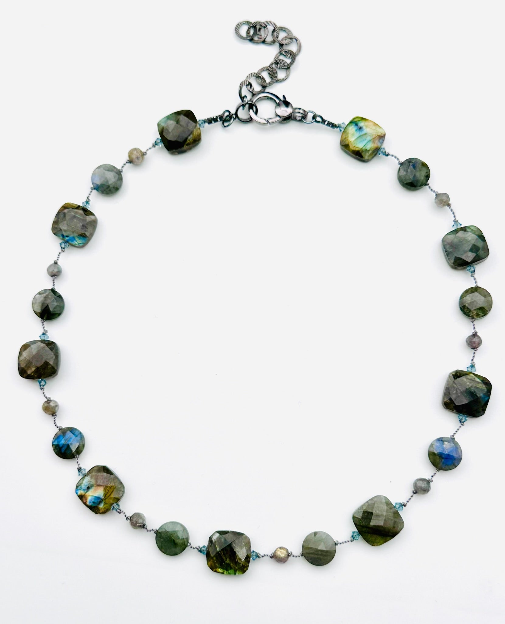 17.5" Labradorite Faceted Cushion Shape Mix Necklace