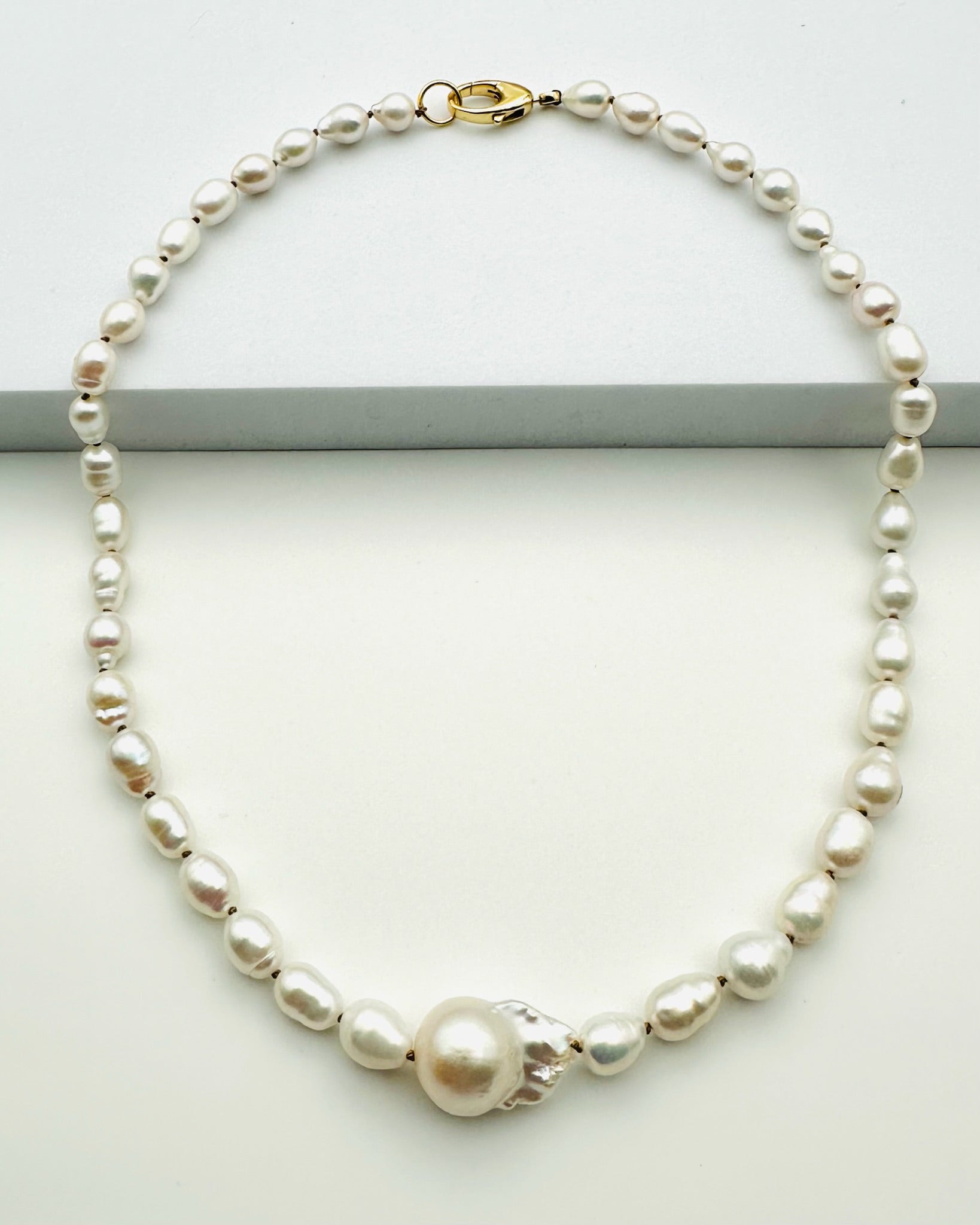 17.5" Small Baroque Freshwater Pearl Necklace with Single Baroque Pearl
