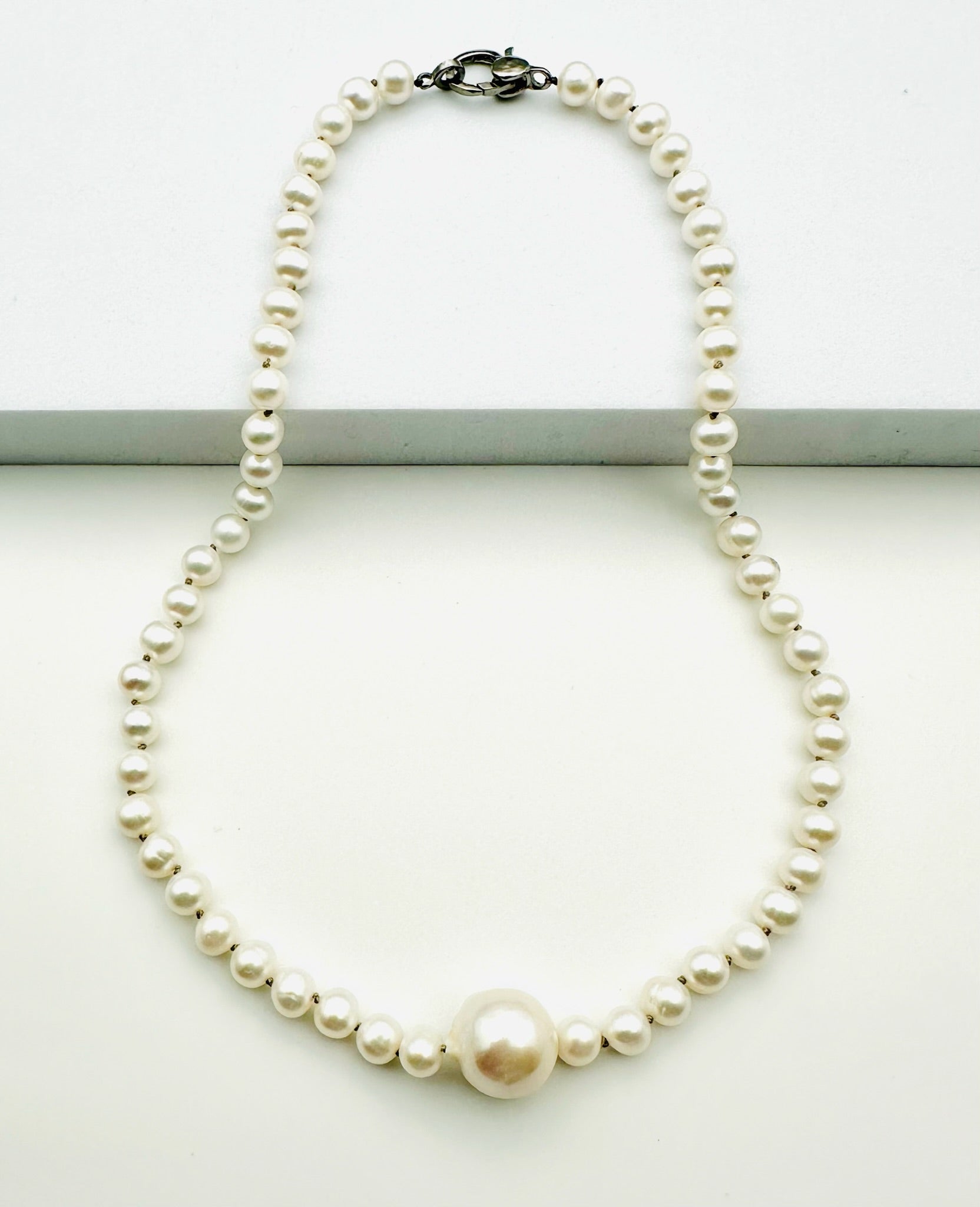 Round 6mm Freshwater Pearl Necklace with Single Round Baroque Pearl with Rhodium Sterling Silver Clasp, 17" length