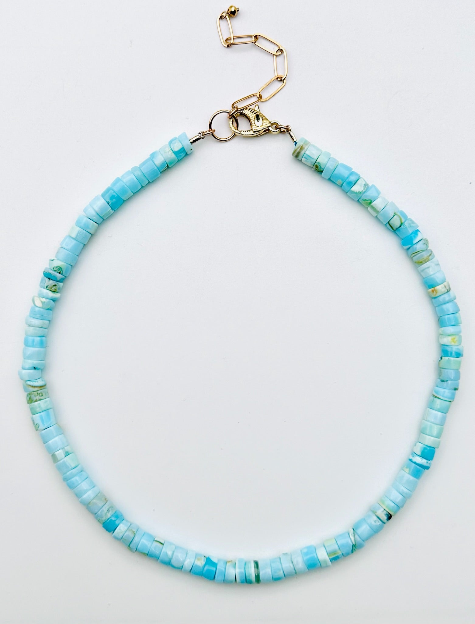 17" Smooth Peruvian Opal Heishi Necklace with Gold Fill Clasp and Chain