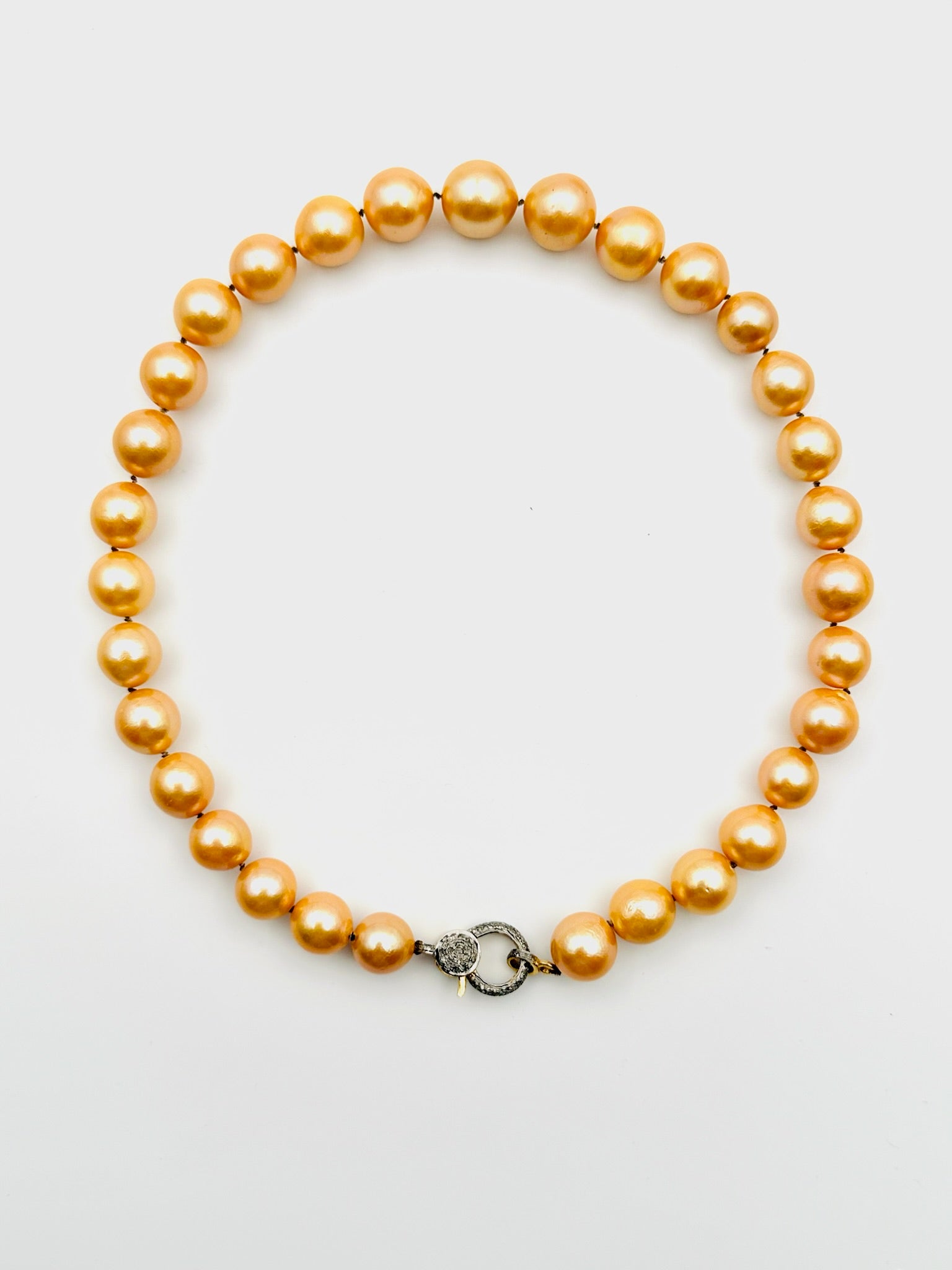 13-15mm Graduated Golden Akoya Pearl Necklace with Gold Vermeil, 18k/Sterling Silver, Diamond Two Tone Clasp, 18" length