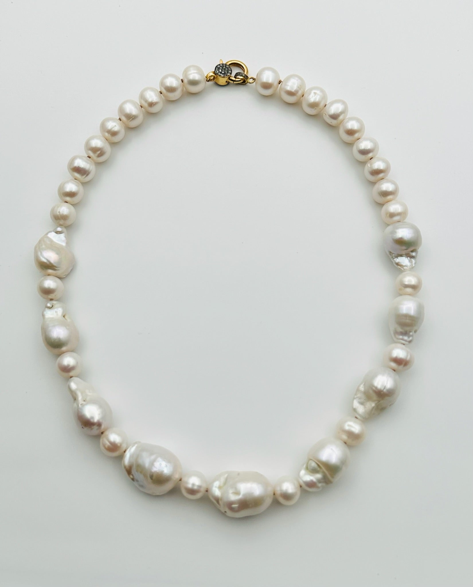 14-16mm White Baroque and 10mm Freshwater Pearl Short Necklace 18K Gold Vermeil and Diamond, 18" Length