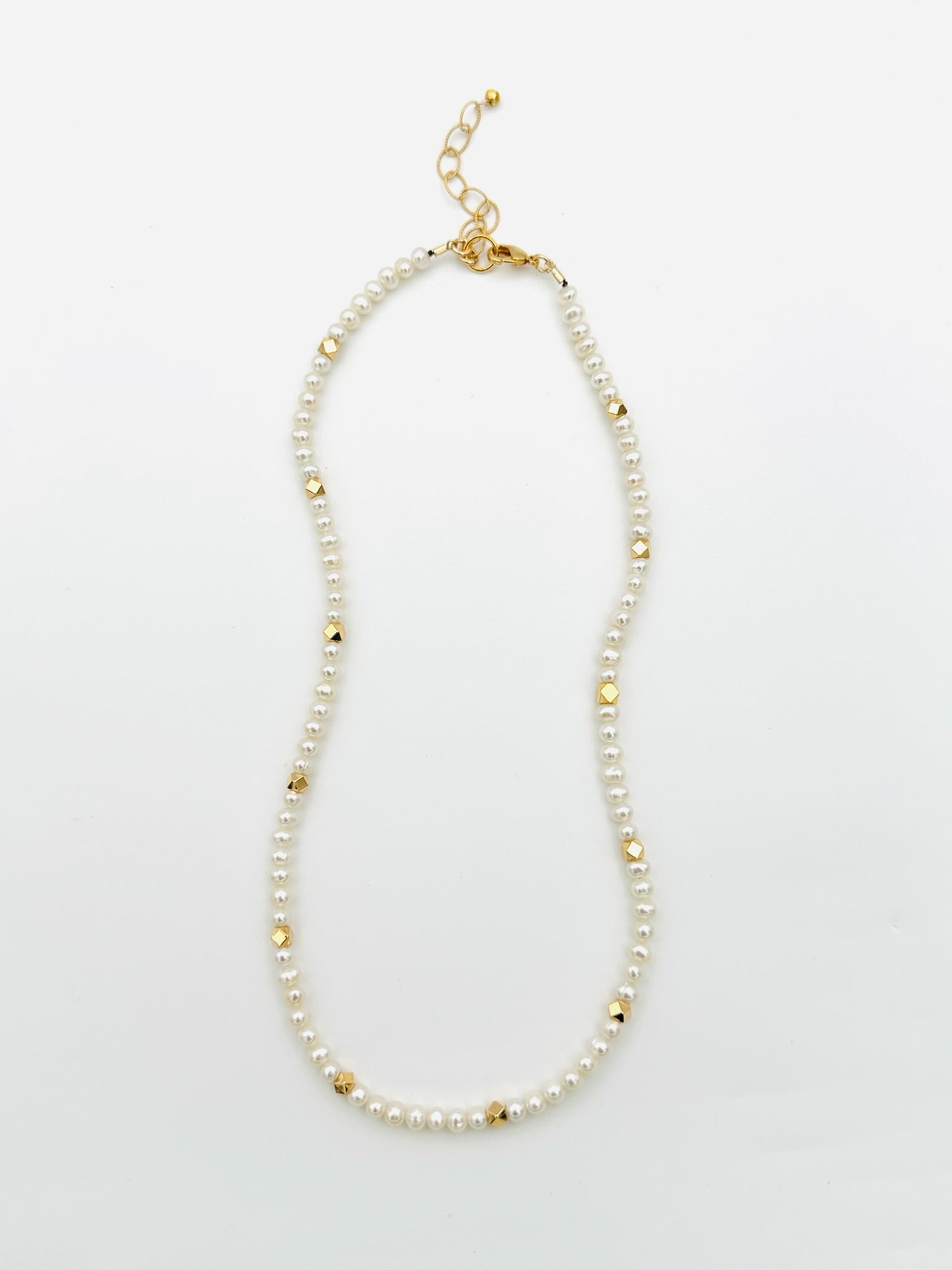 4mm Freshwater Pearl and Gold Filled Faceted Bead Necklace, 18" Length
