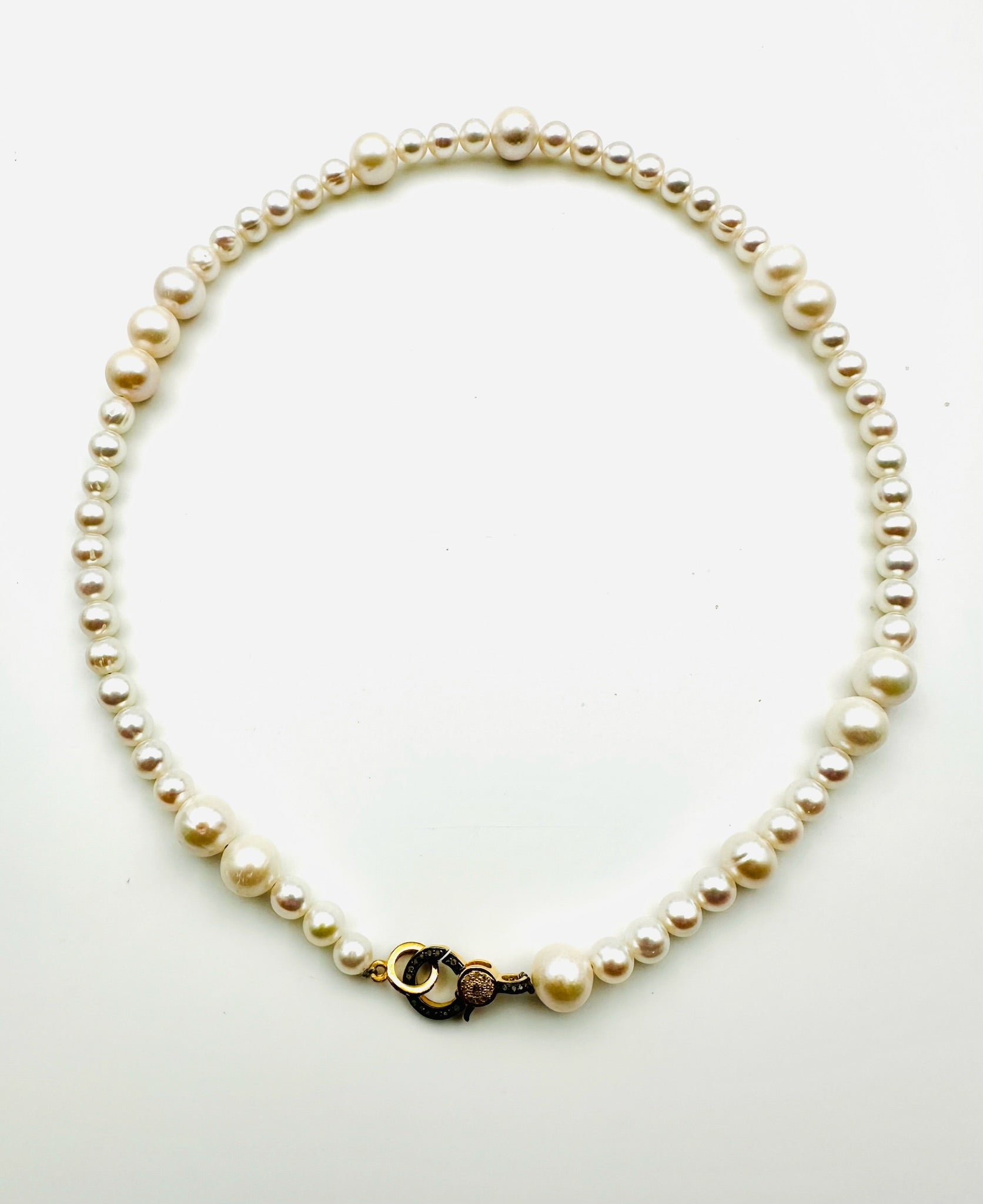 6 and 10mm Freshwater Pearl Mix Necklace with 2-Tone Sterling Silver/Gold Vermeil Diamond Clasp, 18" length