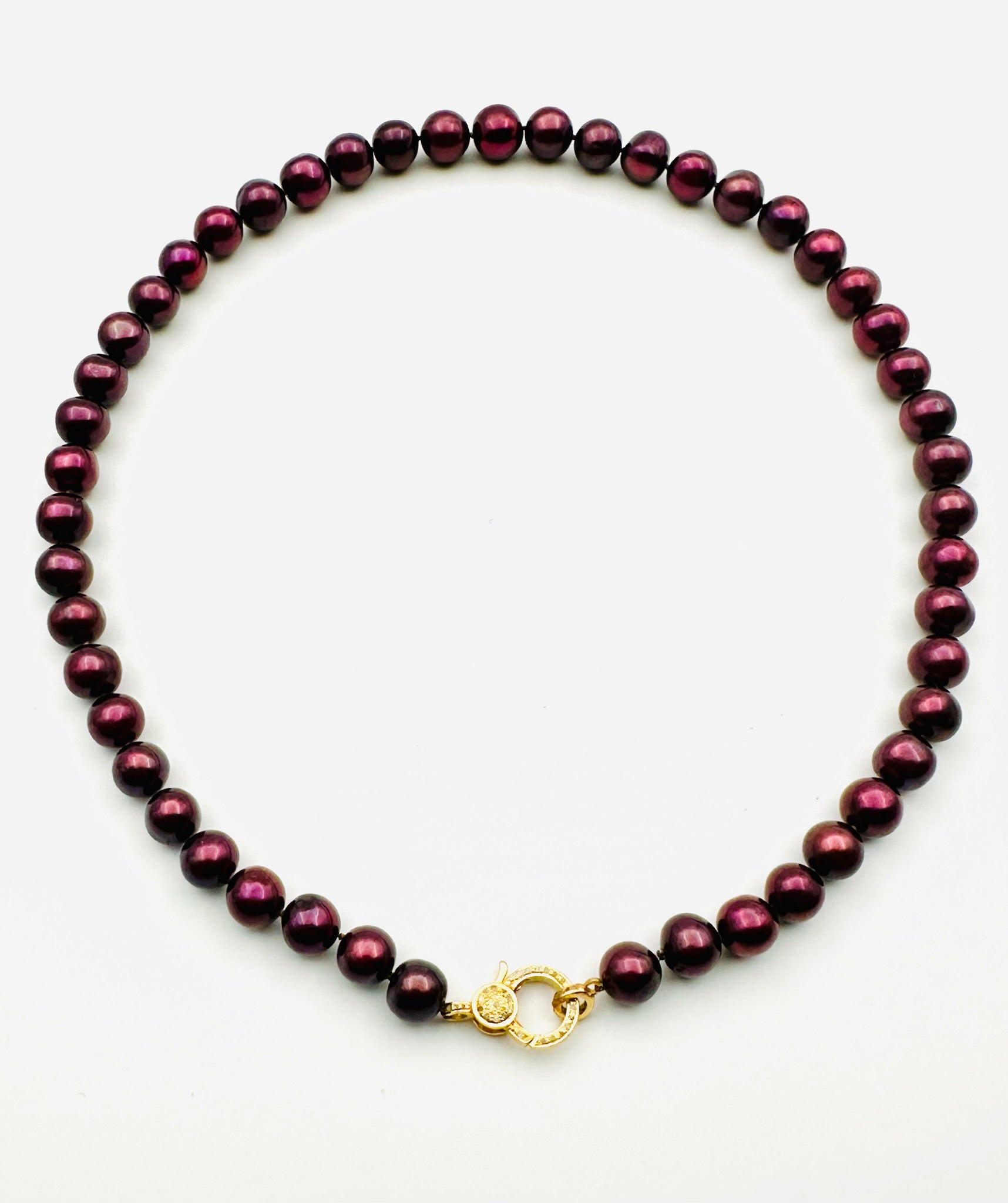 18" 8-9mm Purple Round Freshwater Pearl Necklace with Gold Gold Vermeil Clasp
