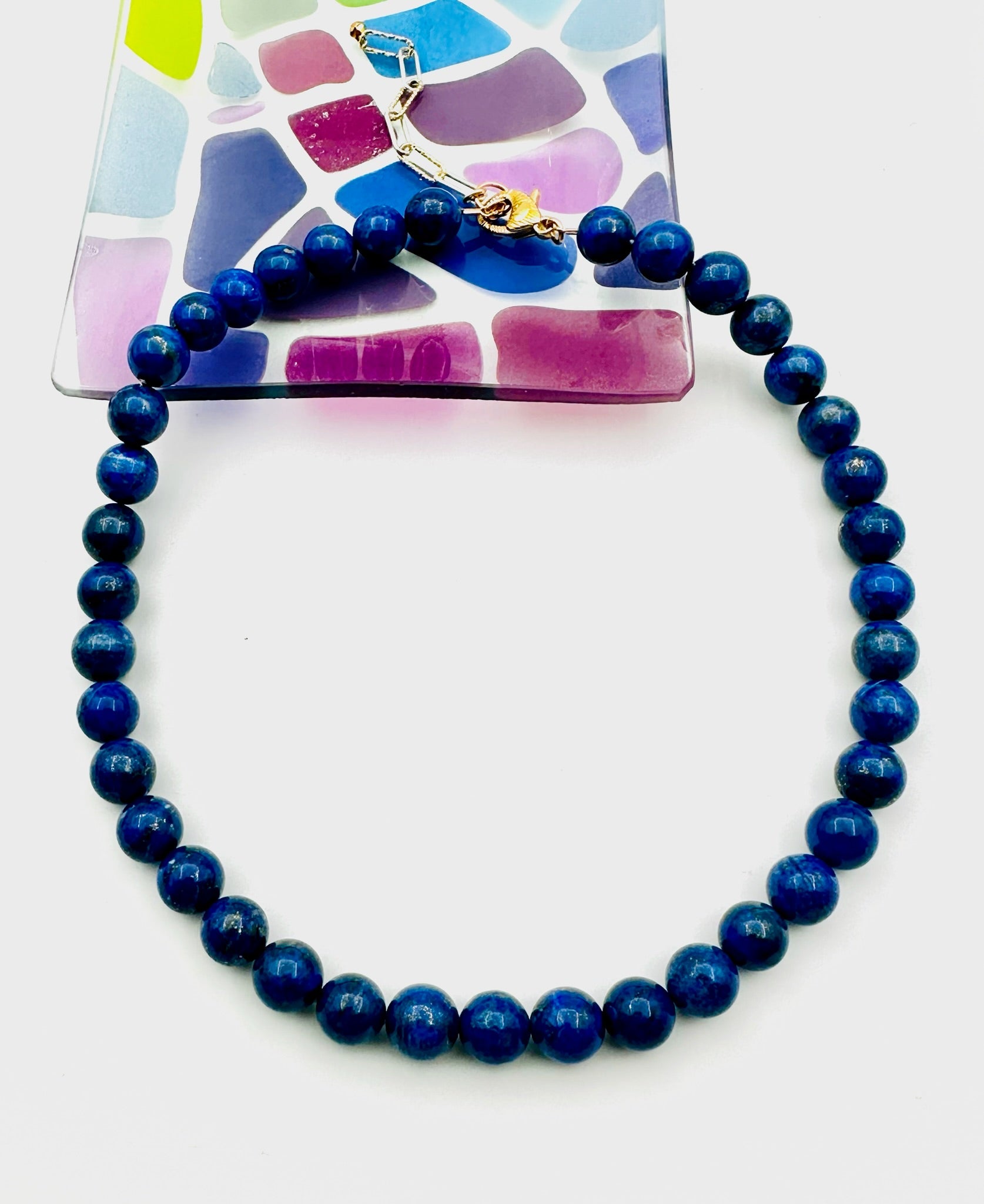 18" AA Blue Lapis Ball Necklace with Two Tone 2" Extension Chain