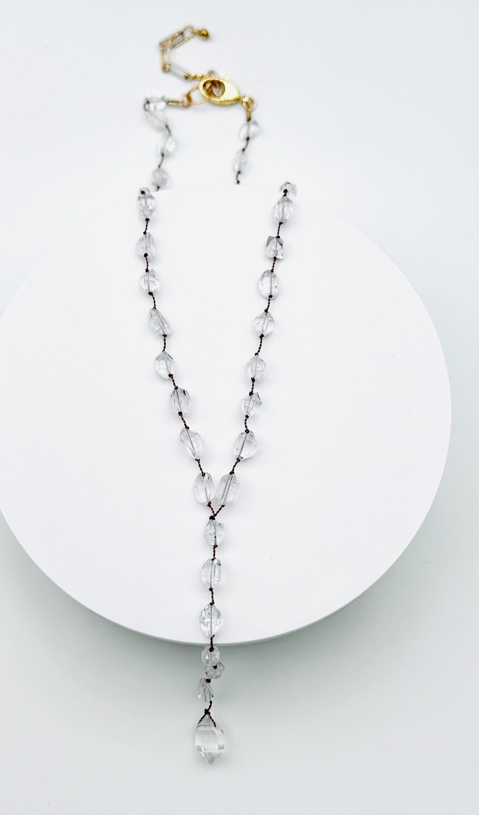 AAA Clear Herkimer Faceted Diamond Y Necklace with Gold Fill Clasp, 18" length