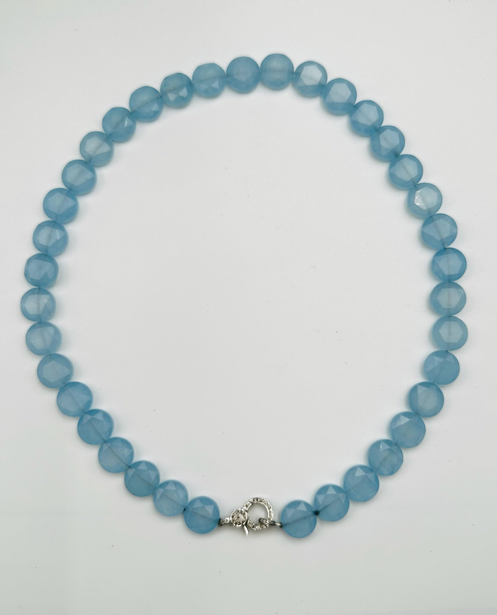18" Aquamarine Necklace with Sterling Silver and Diamond Clasp