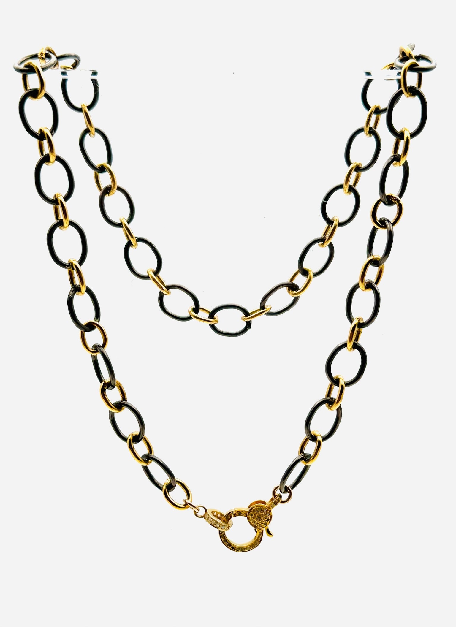 Black Rhodium Oval Gold Vermeil, 18k/Sterling Silver, Diamond Chain, 18" length