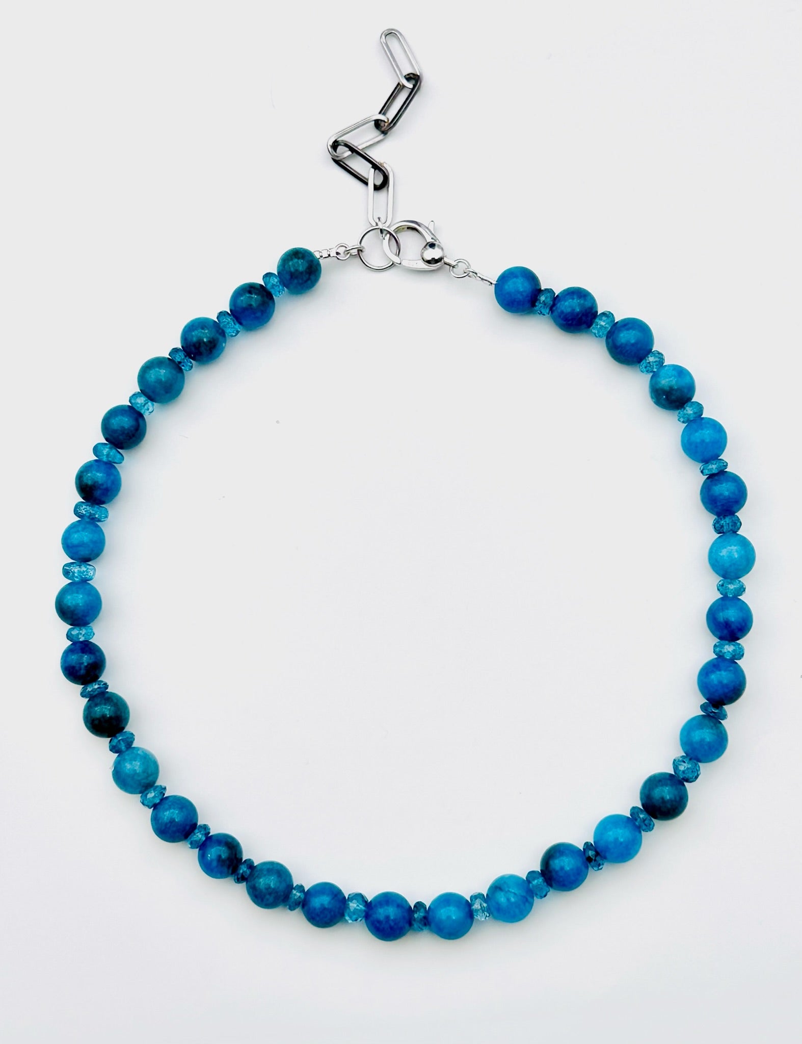 Blue Apatite Ball and Rondelle Necklace with Sterling Silver Clasp, 18" length