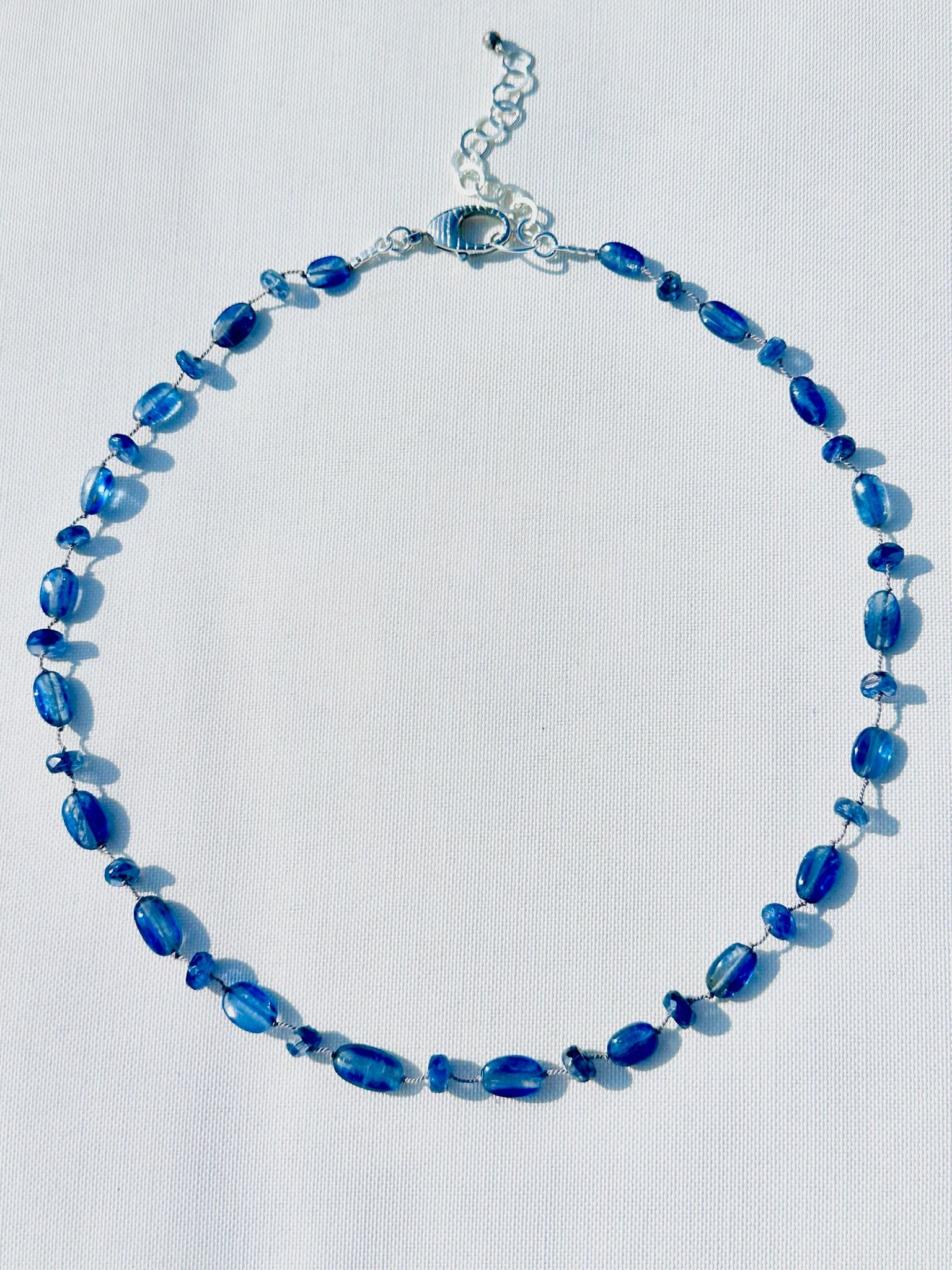 Blue Kyanite Pebble and Faceted Rondelle Necklace with Sterling Silver Clasp, 18" length