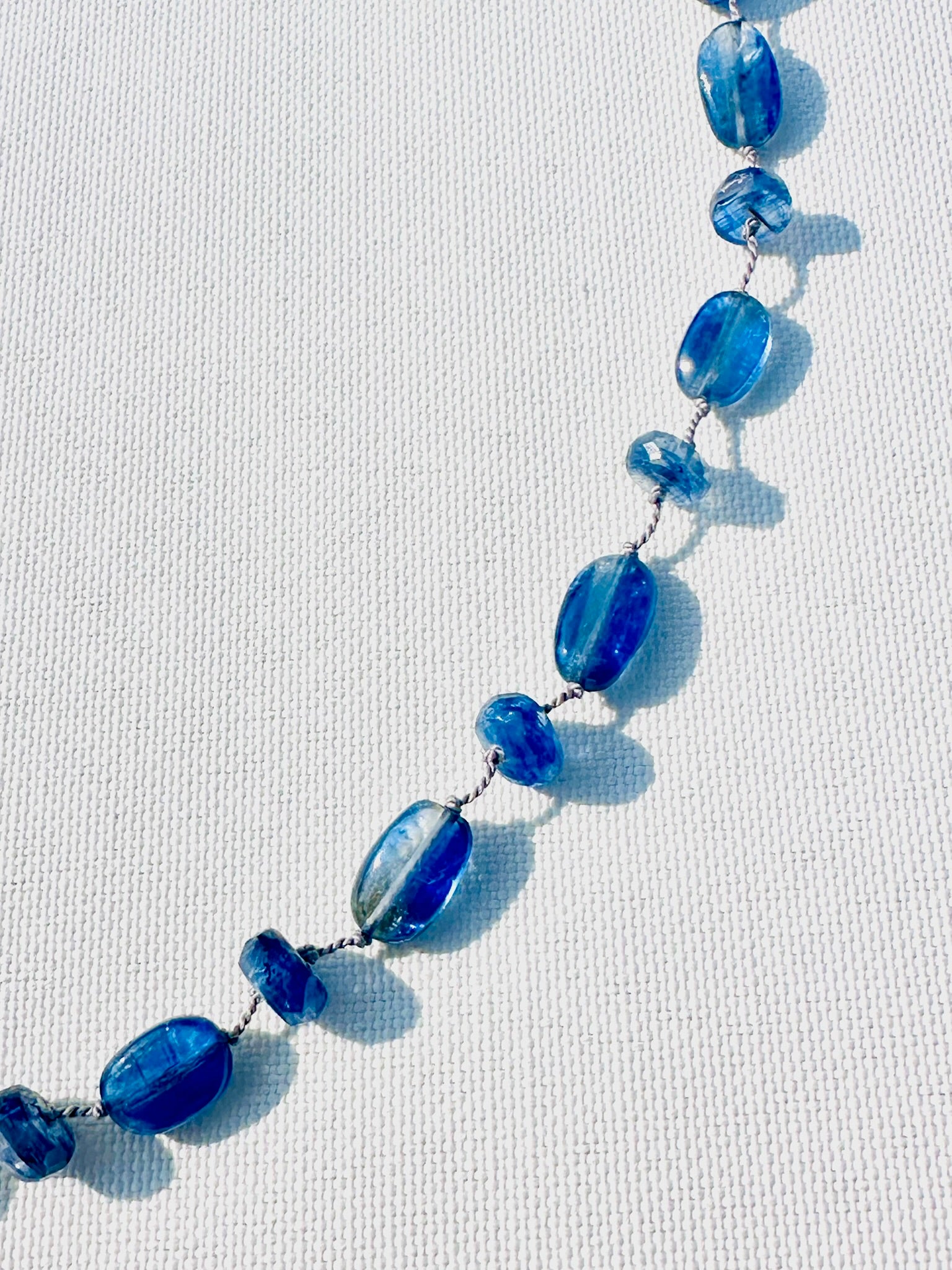 18" Blue Kyanite Pebble and Faceted Rondelle Necklace