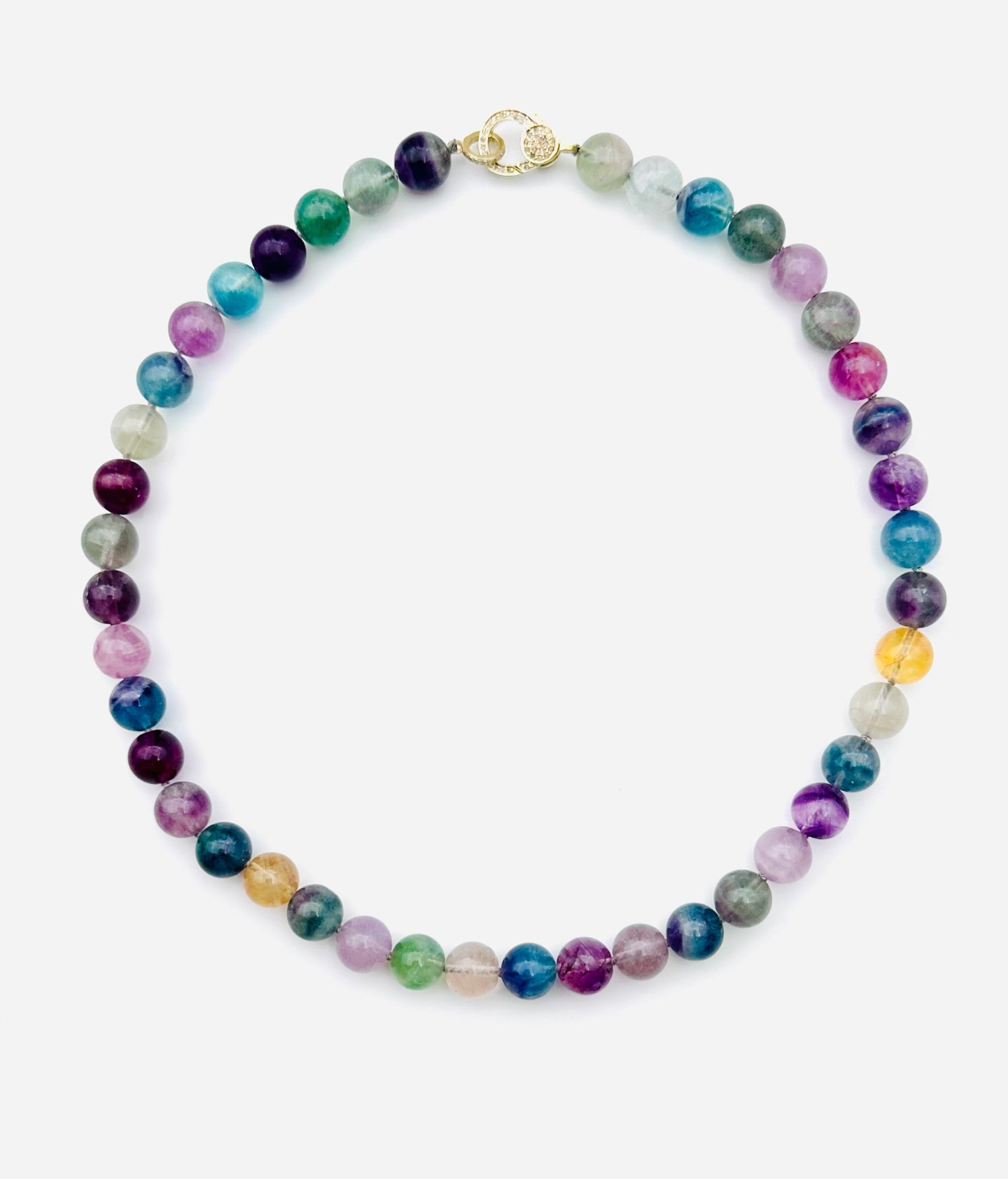 Bright Rainbow Colored Fluorite Ball with Vermeil (18k/sterling silver) Diamond Clasp, 18" length