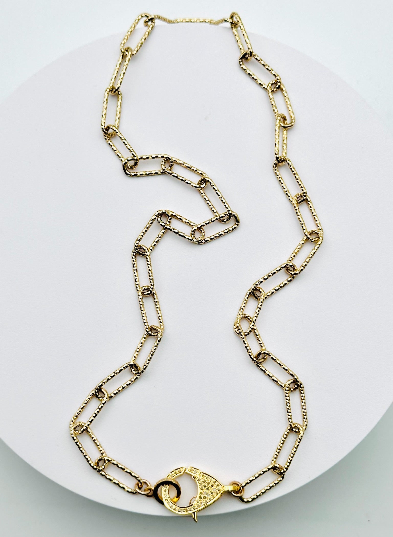 Diamond Cut Vermeil (18k/sterling silver) 15x5mm Paperclip Chain with Vermeil (18k/sterling silver) Diamond Clasp, 18" length