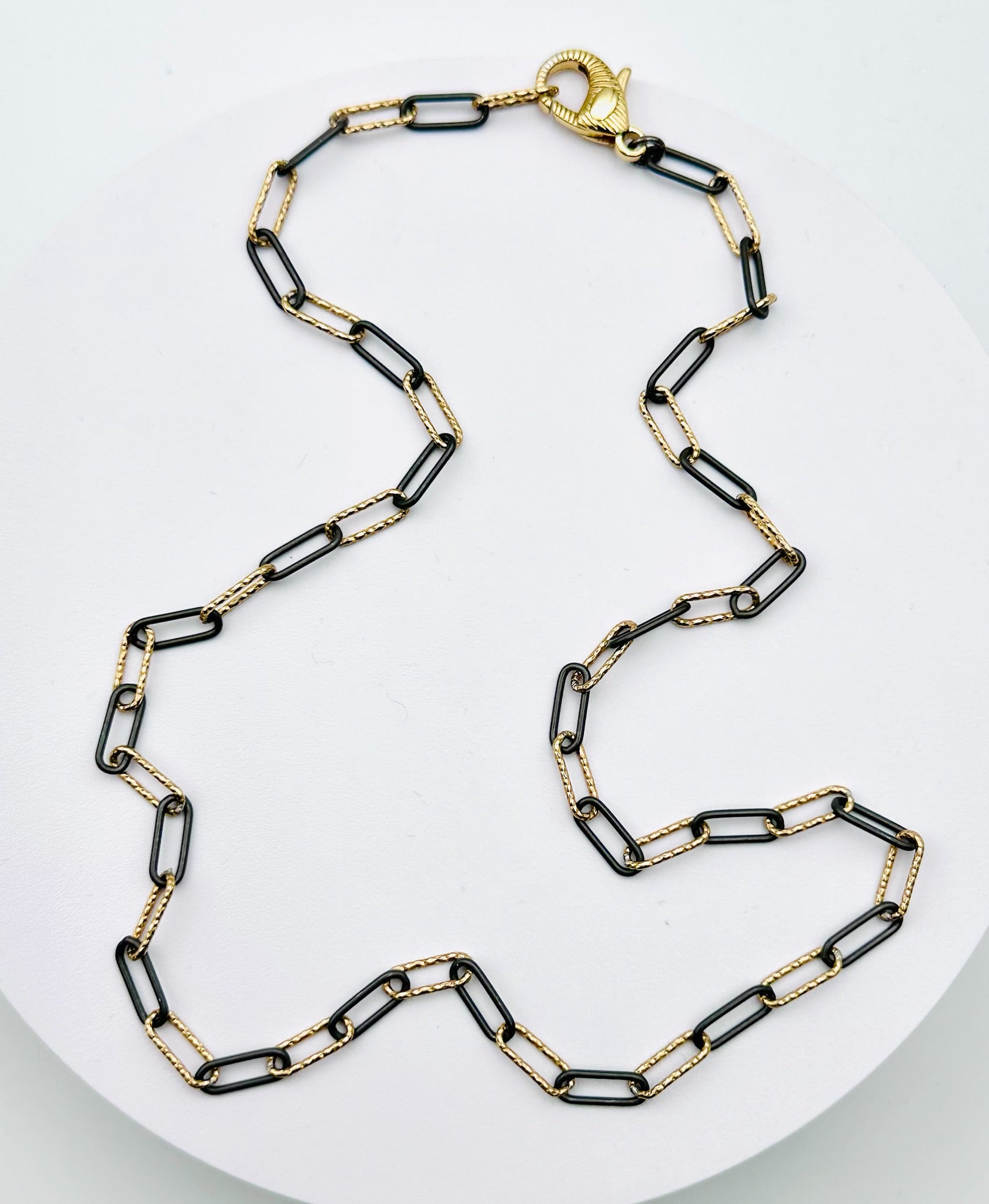 18" Diamond Cut Vermeil and Rhodium Paperclip Chain Necklace with Gold Fill Clasp