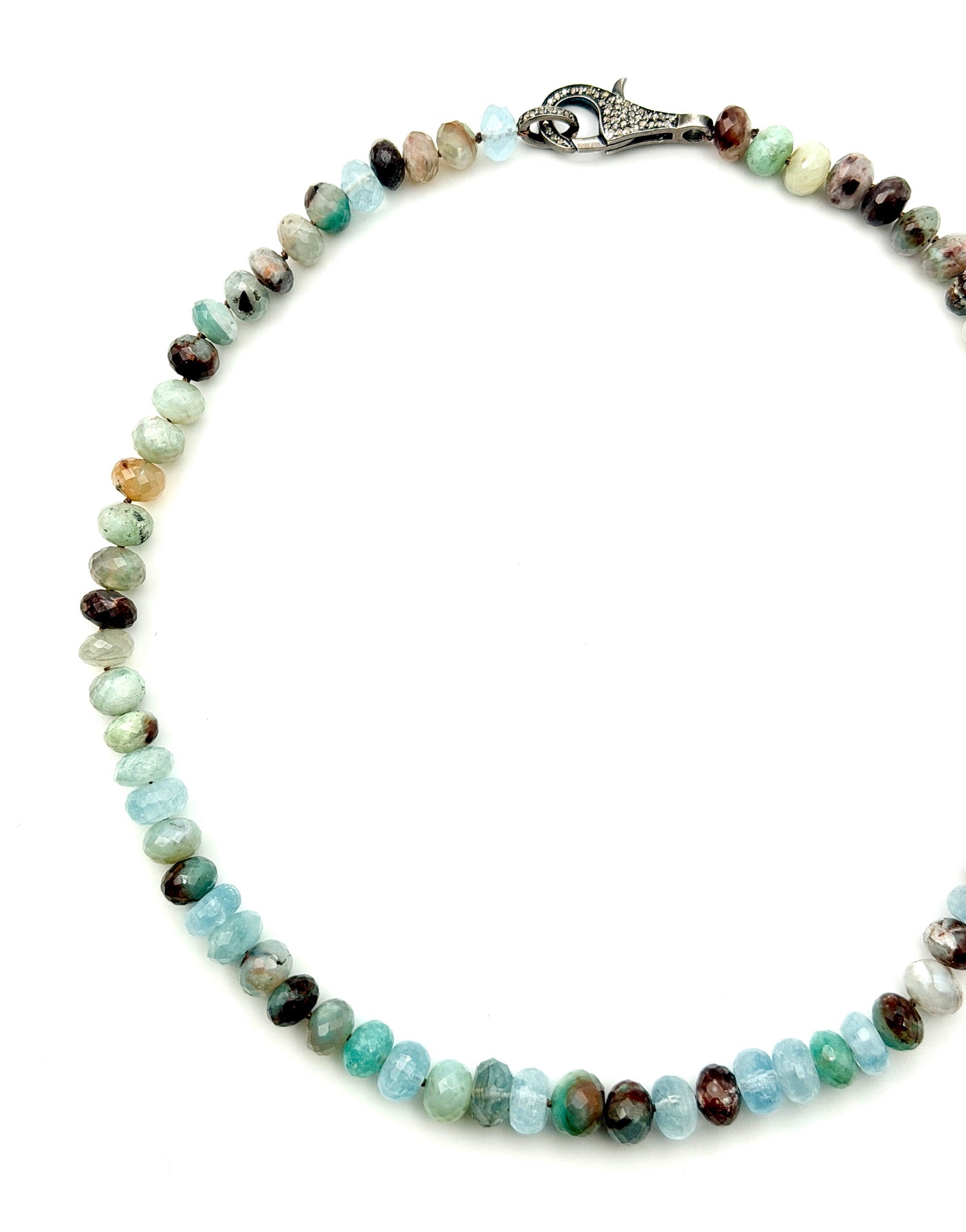 Faceted Aquamarine Rondelle and Aquaprase Faceted Rondelle Necklace with Sterling Silver Diamond Clasp, 18" length