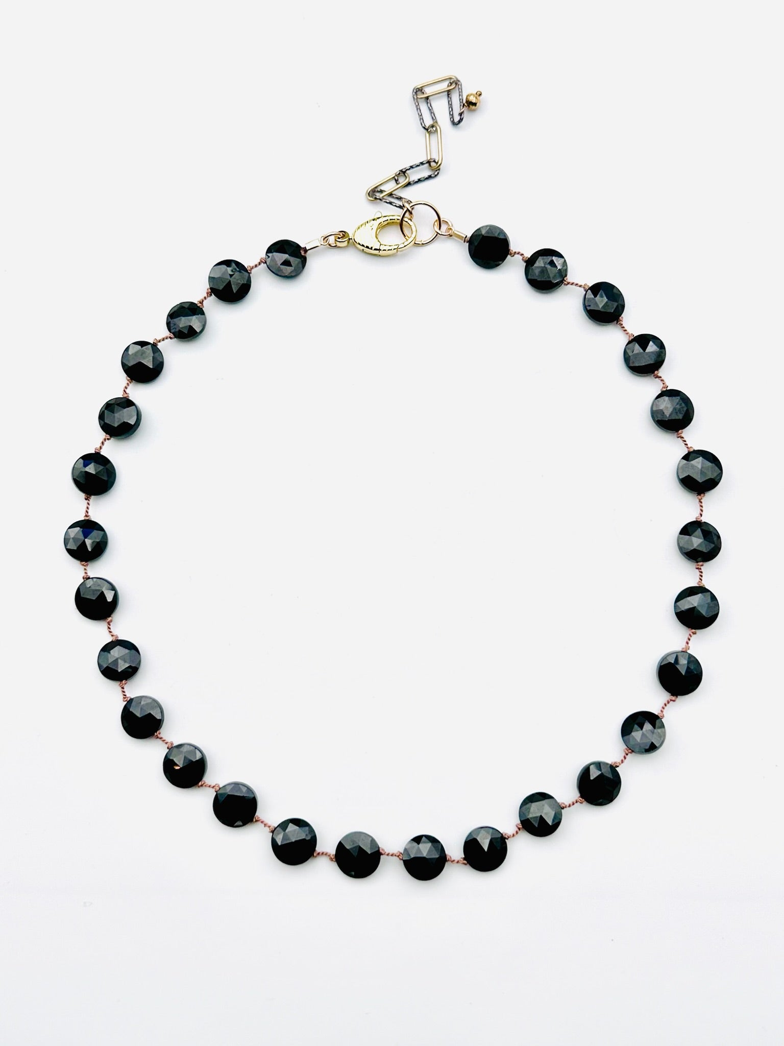 18" Faceted Black Spinel Coin Shaped Necklace with Vermeil Clasp