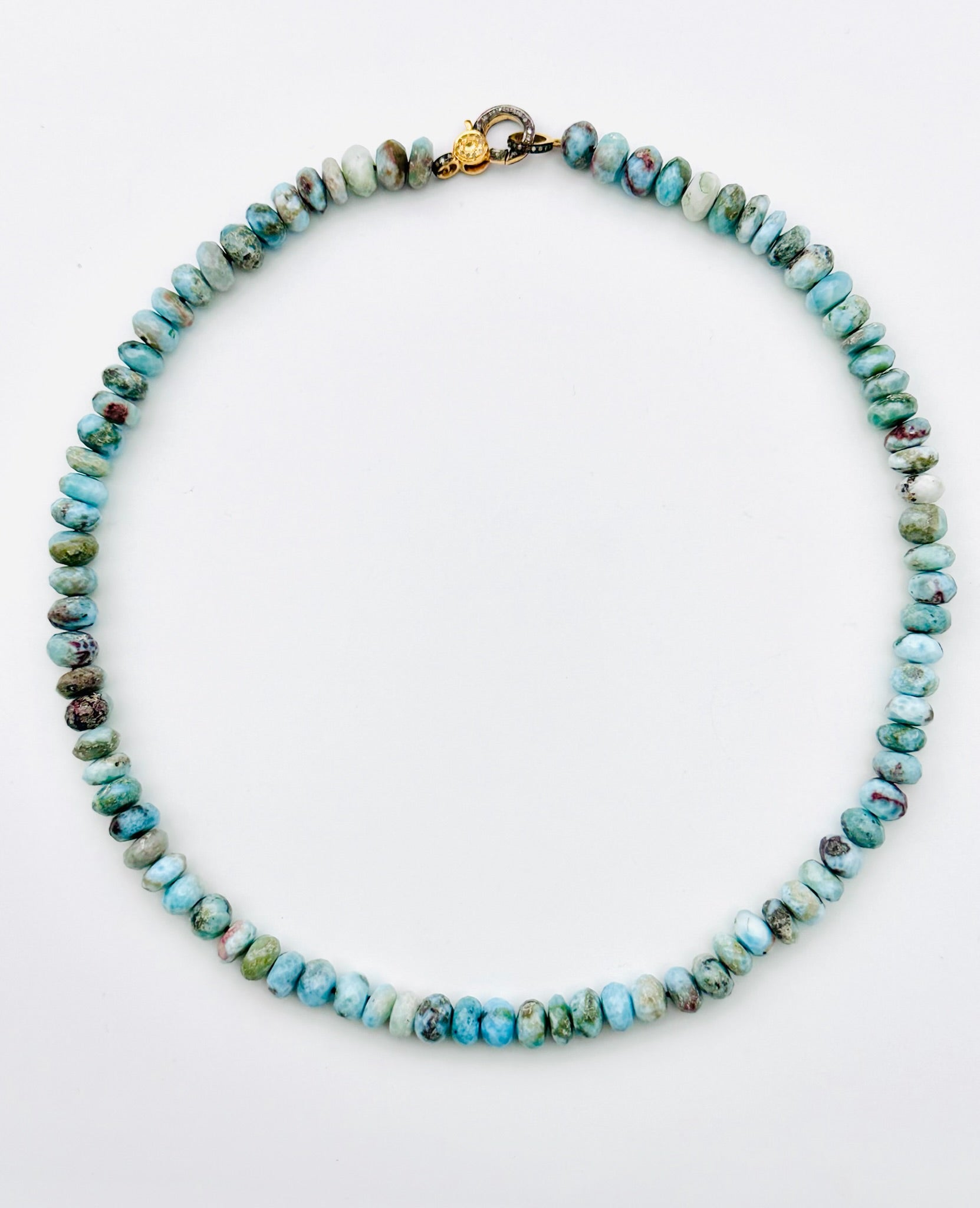 Faceted Natural Larimar Rondelle Necklace with Vermeil and Sterling Silver Diamond Clasp, 18" length