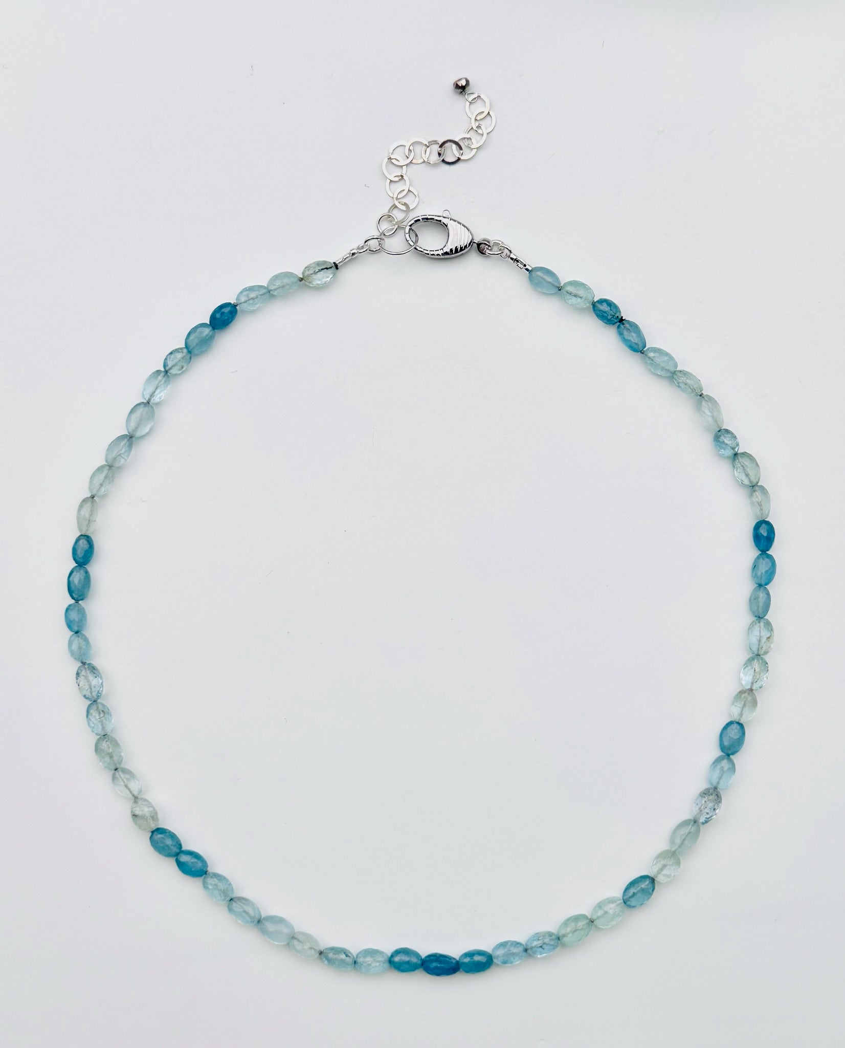 18" Faceted Oval Ombré Moss Aquamarine Necklace