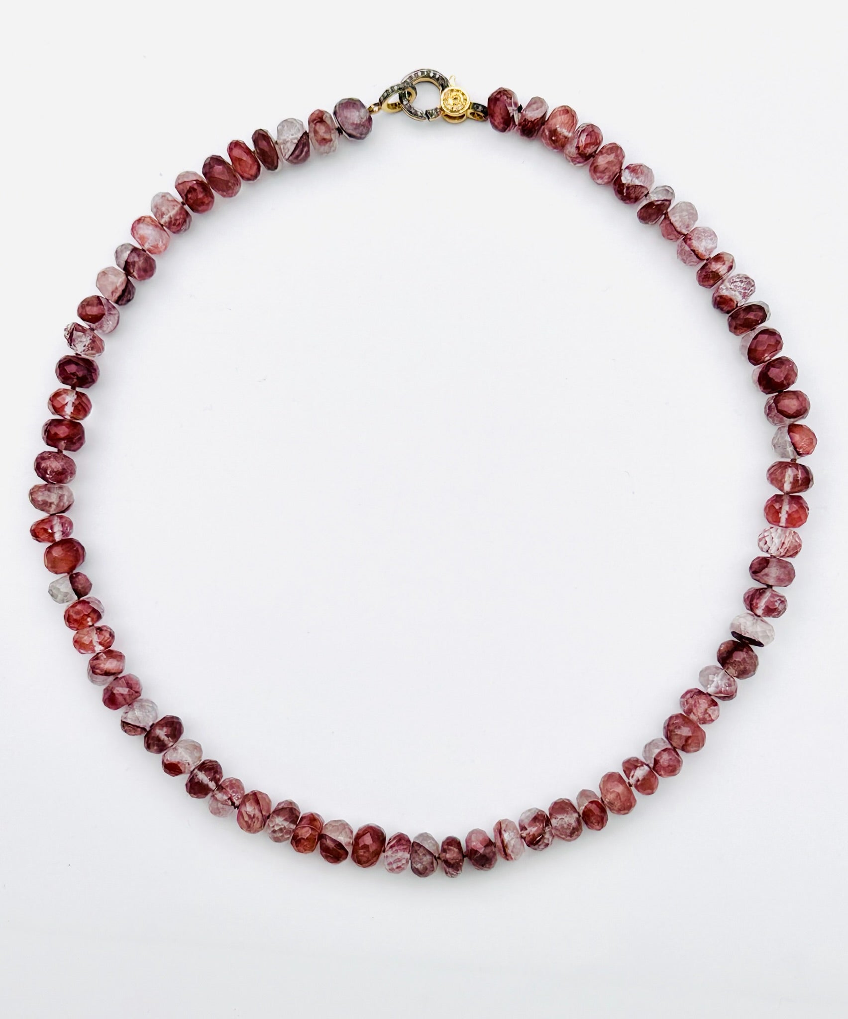 18" Faceted Phantom Lodanite Quartz Rondelle Necklace with Vermeil and Sterling Silver Diamond Clasp