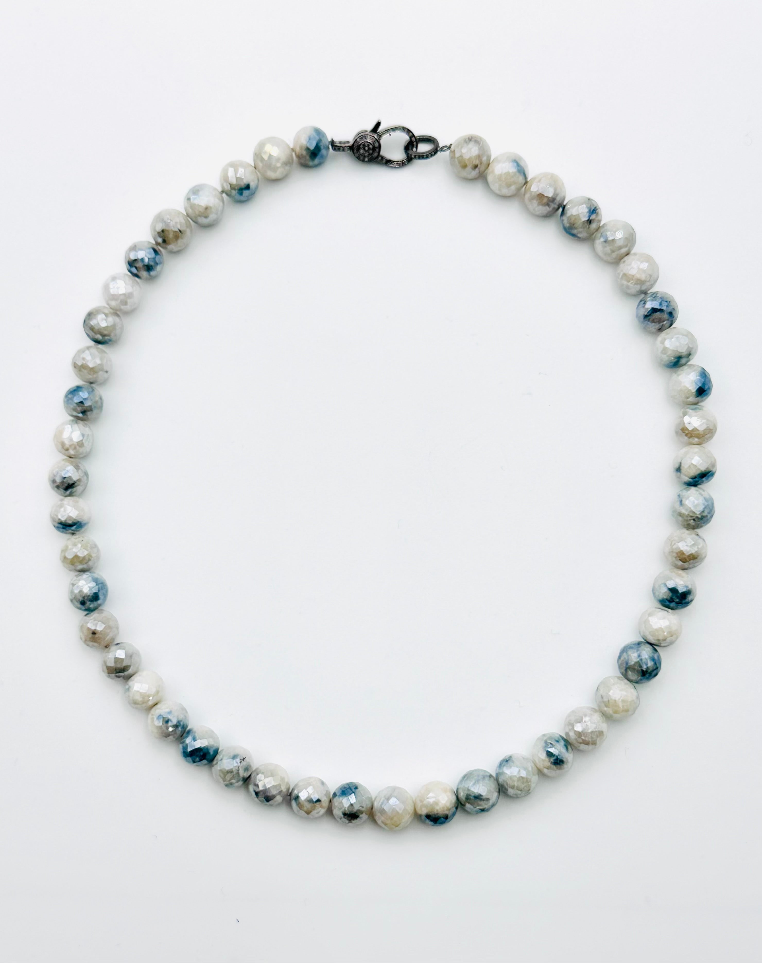 18" Faceted Silverite Ball Necklace with Sterling Silver Diamond Clasp