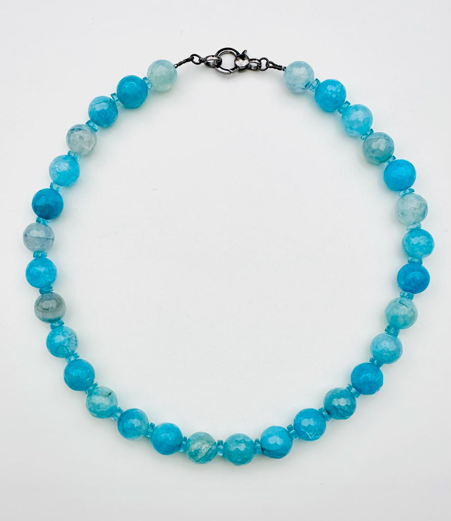 Faceted Turquoise Agate Ball and Apatite Necklace with Sterling Silver Clasp,18" length