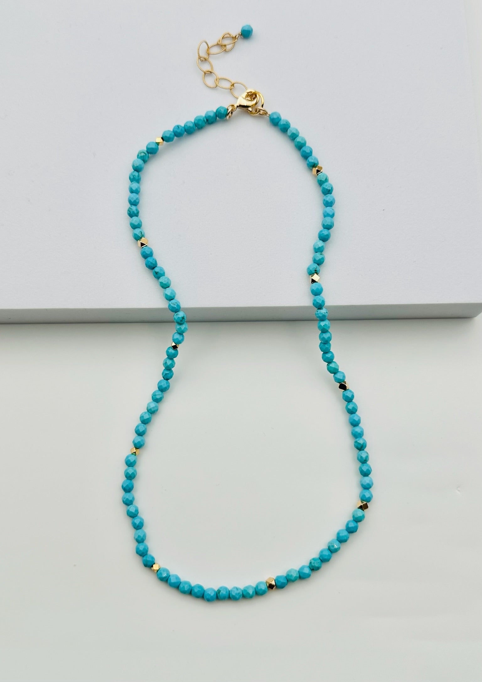 Faceted Turquoise Gold Filled Bead Necklace, 18" Length