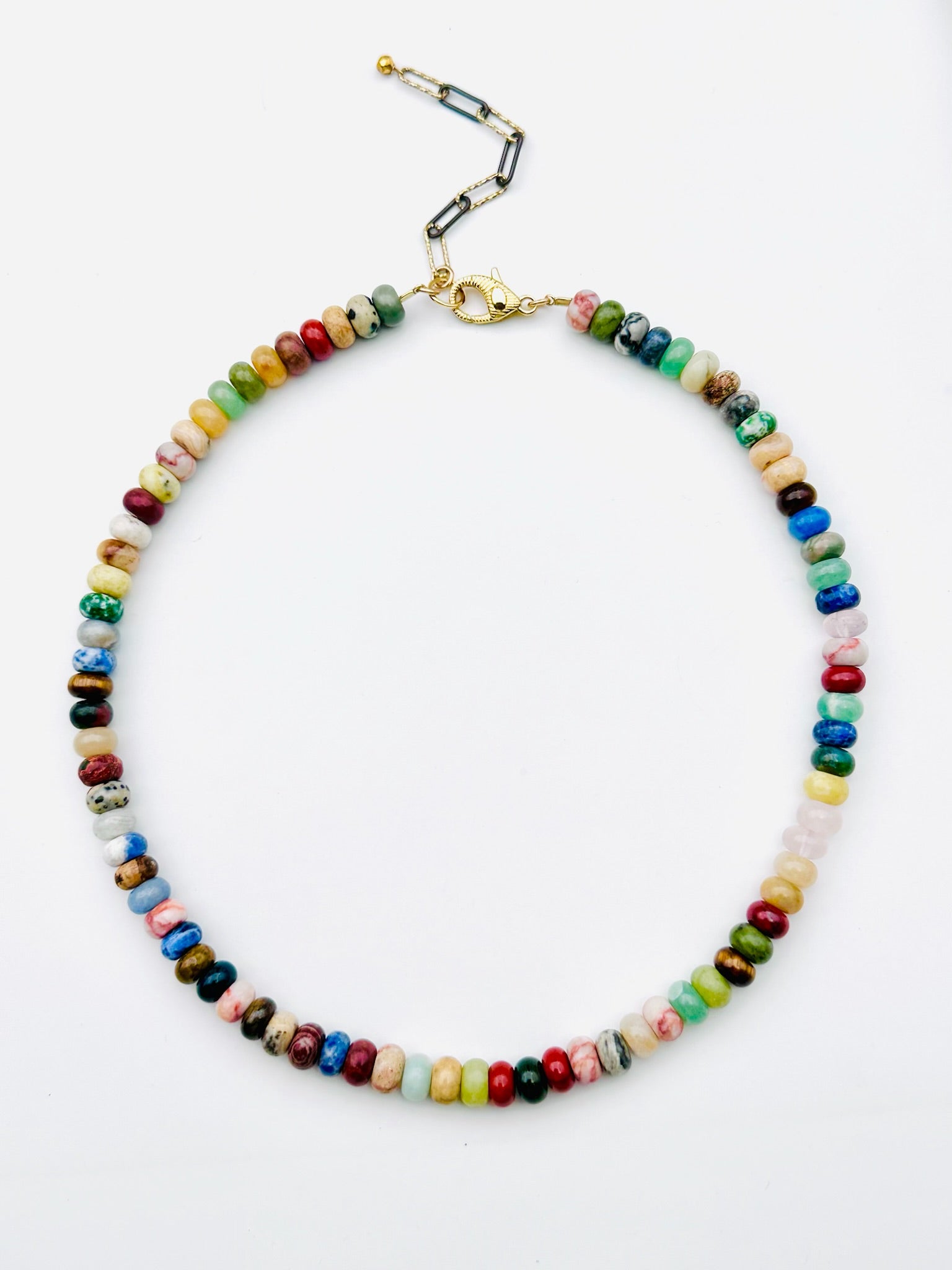 Fall Multi Stone Smooth Rondelle Necklace with A Gold Filled Clasp, 18" length