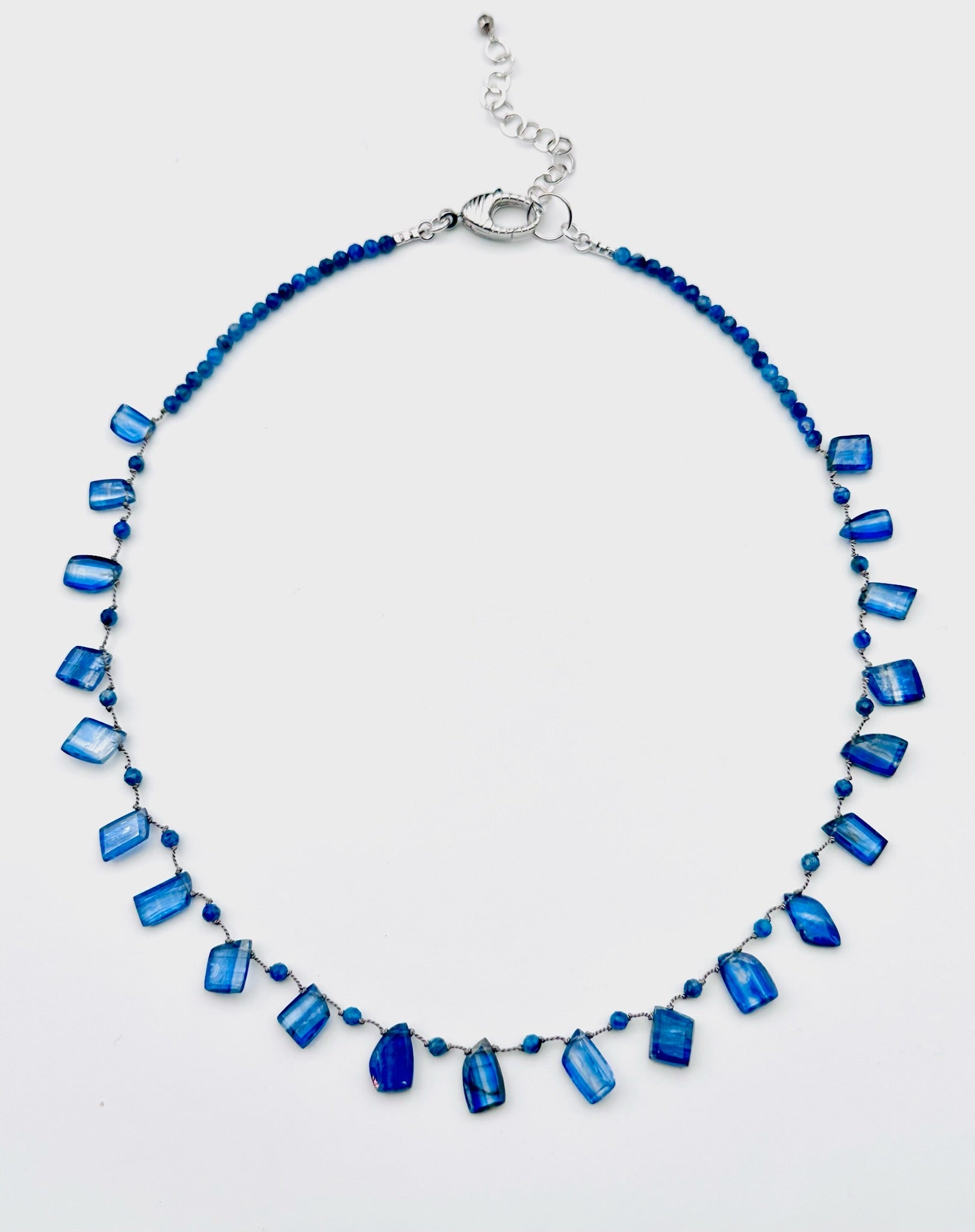 18" Flat Organic AAA Blue Kyanite Necklace with Sterling Silver Clasp