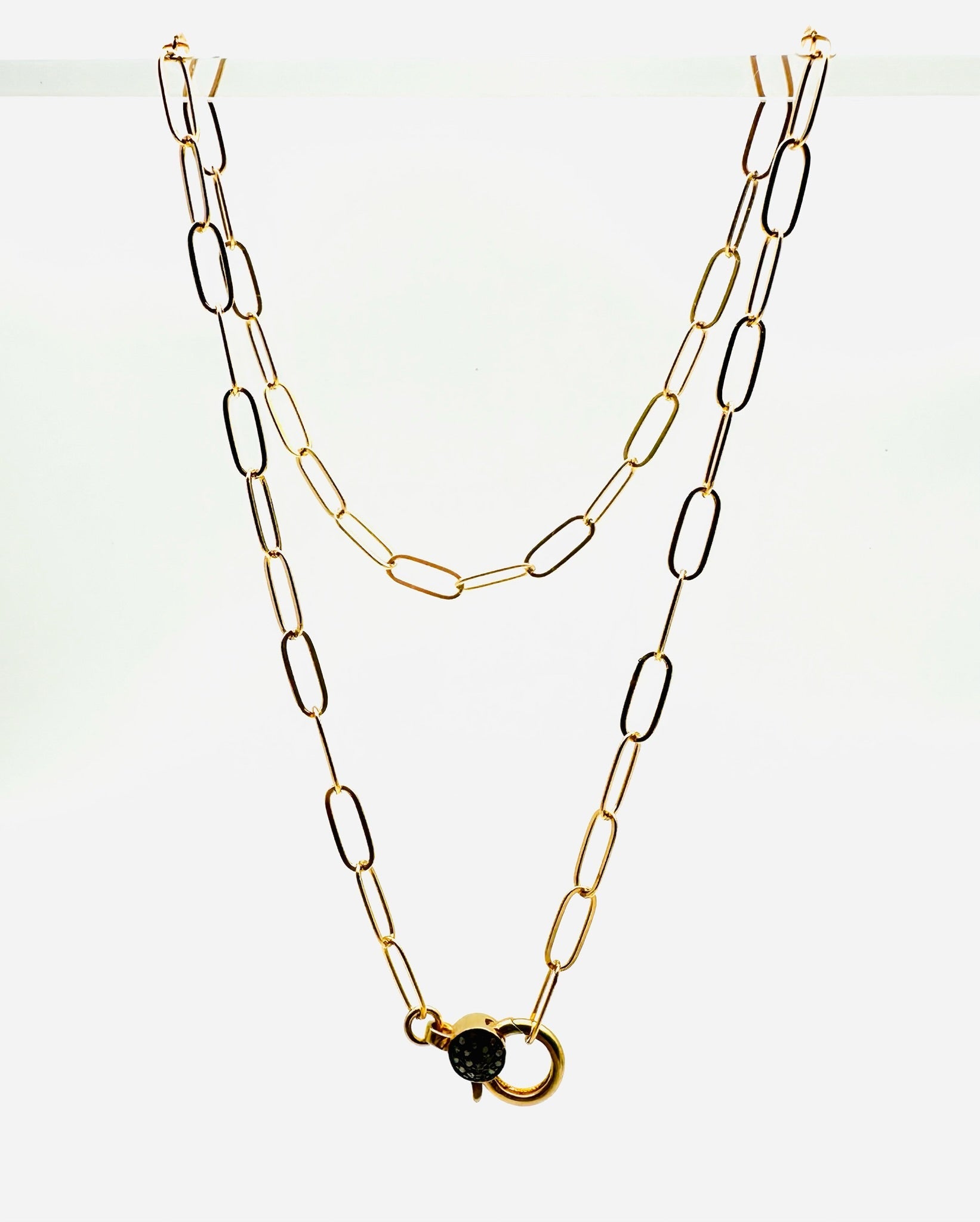 Gold Faceted 5x12mm Paperclip Chain with Gold Vermeil, 18k/Sterling Silver, and Diamond Clasp 18" length