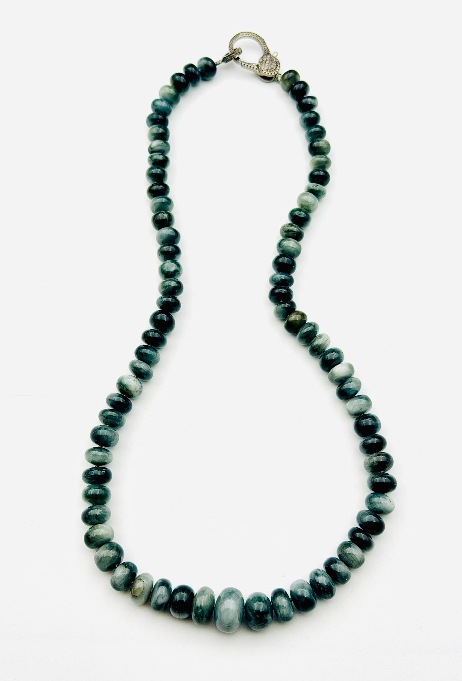 Graduated Cat's Eye Smooth Rondelle Necklace with Sterling Silver and Diamond Clasp, 18" length