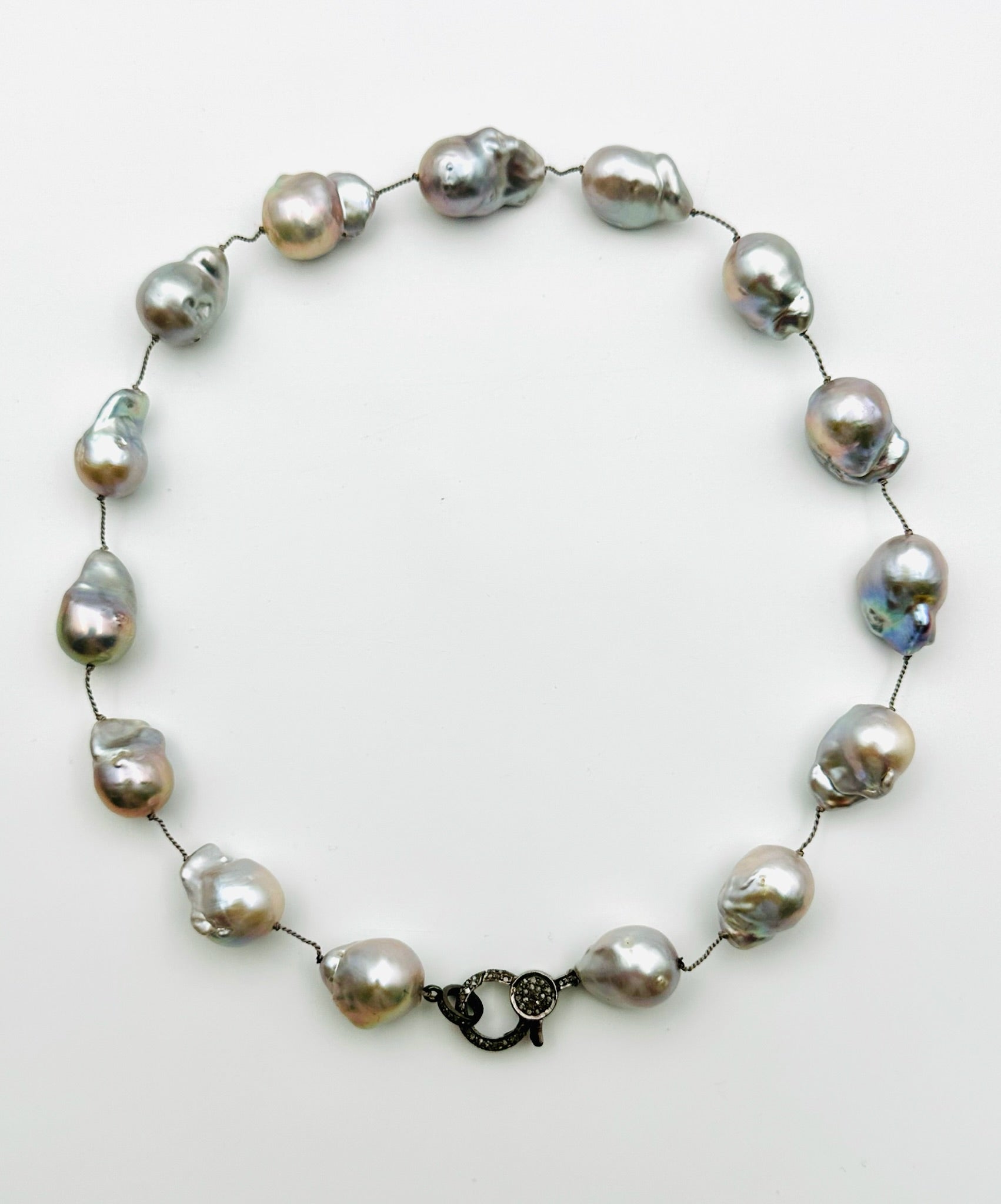 18" Grey Baroque Pearl Necklace with a Sterling Silver Diamond Clasp