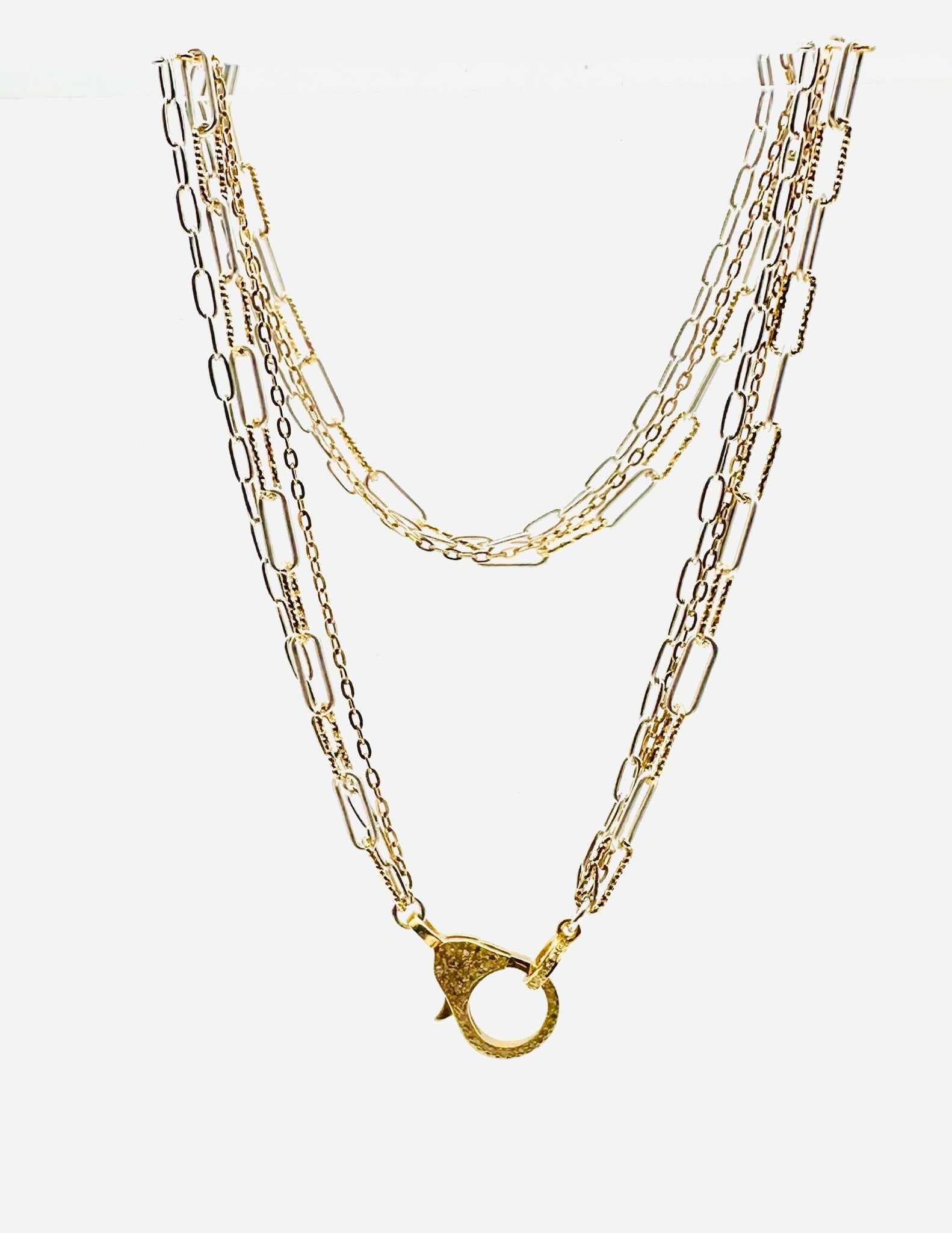Triple Strand Bright Silver Gold Filled Paperclip Chain with Large Vermeil Diamond Clasp, 18" Length