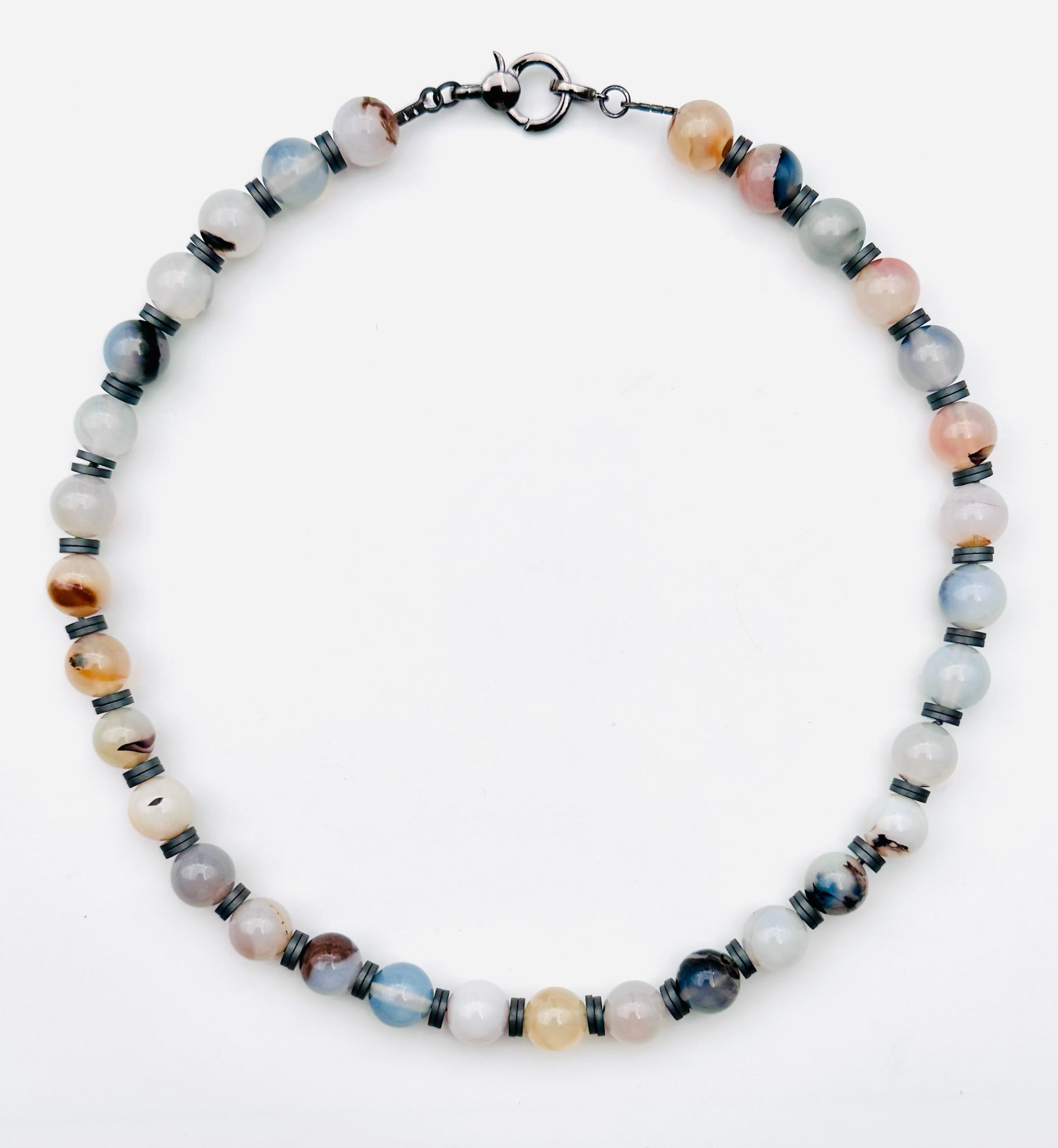 18" Montana Agate Ball and Matte Grey Heishi Bead Necklace with A Sterling Silver Clasp