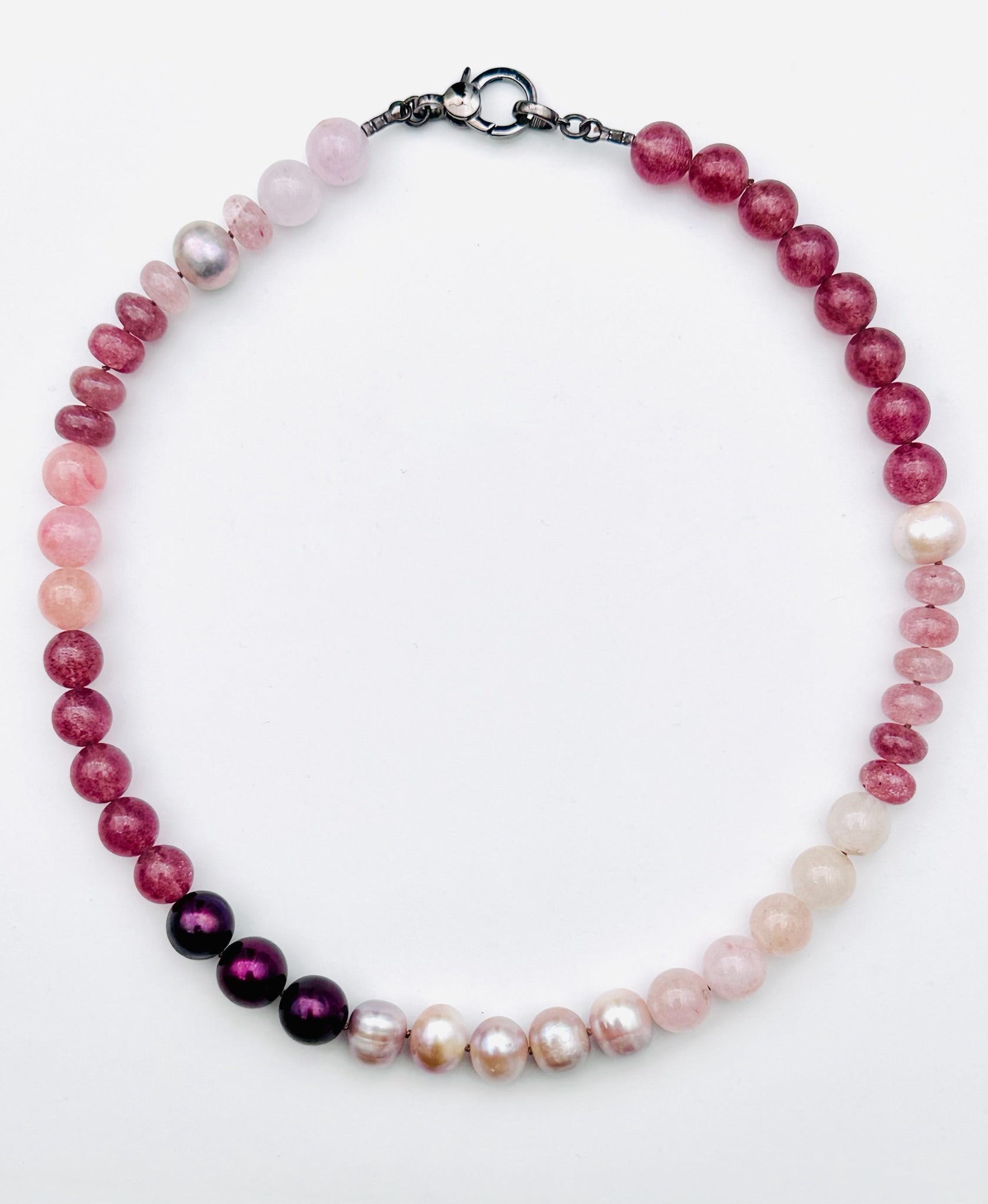 18" Morganite Strawberry Quartz Freshwater Pearl Combination Necklace with Sterling Silver Clasp
