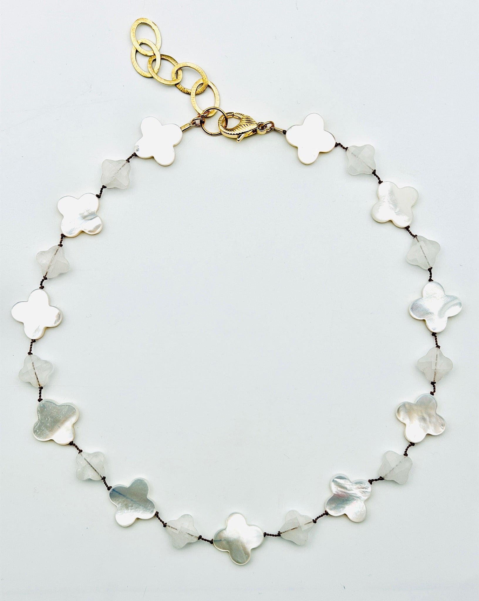 18" Mother of Pearl and Rainbow Moonstone Clover Combo Necklace with Gold Filled Clasp