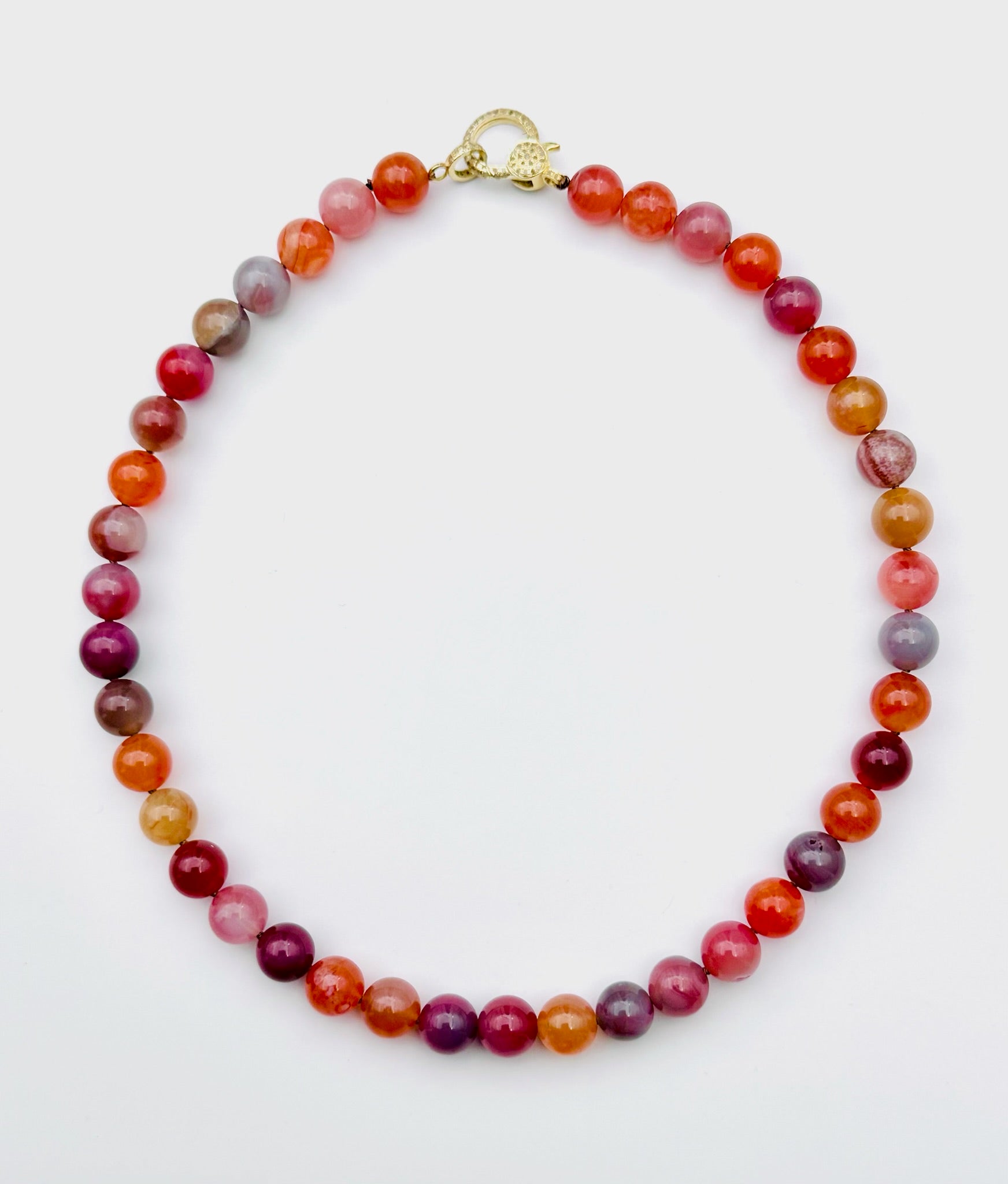Mozambique 10mm Ball Shaped Agate with Vermeil (18k/sterling silver) and Diamond Clasp, 18" length
