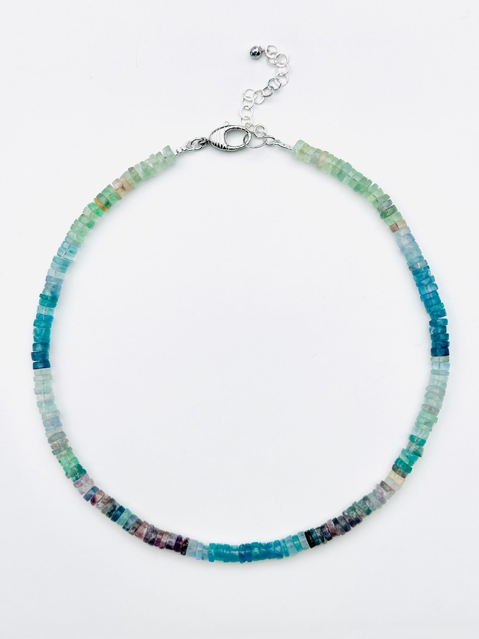 Multi-Color Smooth Fluorite 7mm Heishi Necklace with Sterling Silver Clasp and Extension Chain, 18" length
