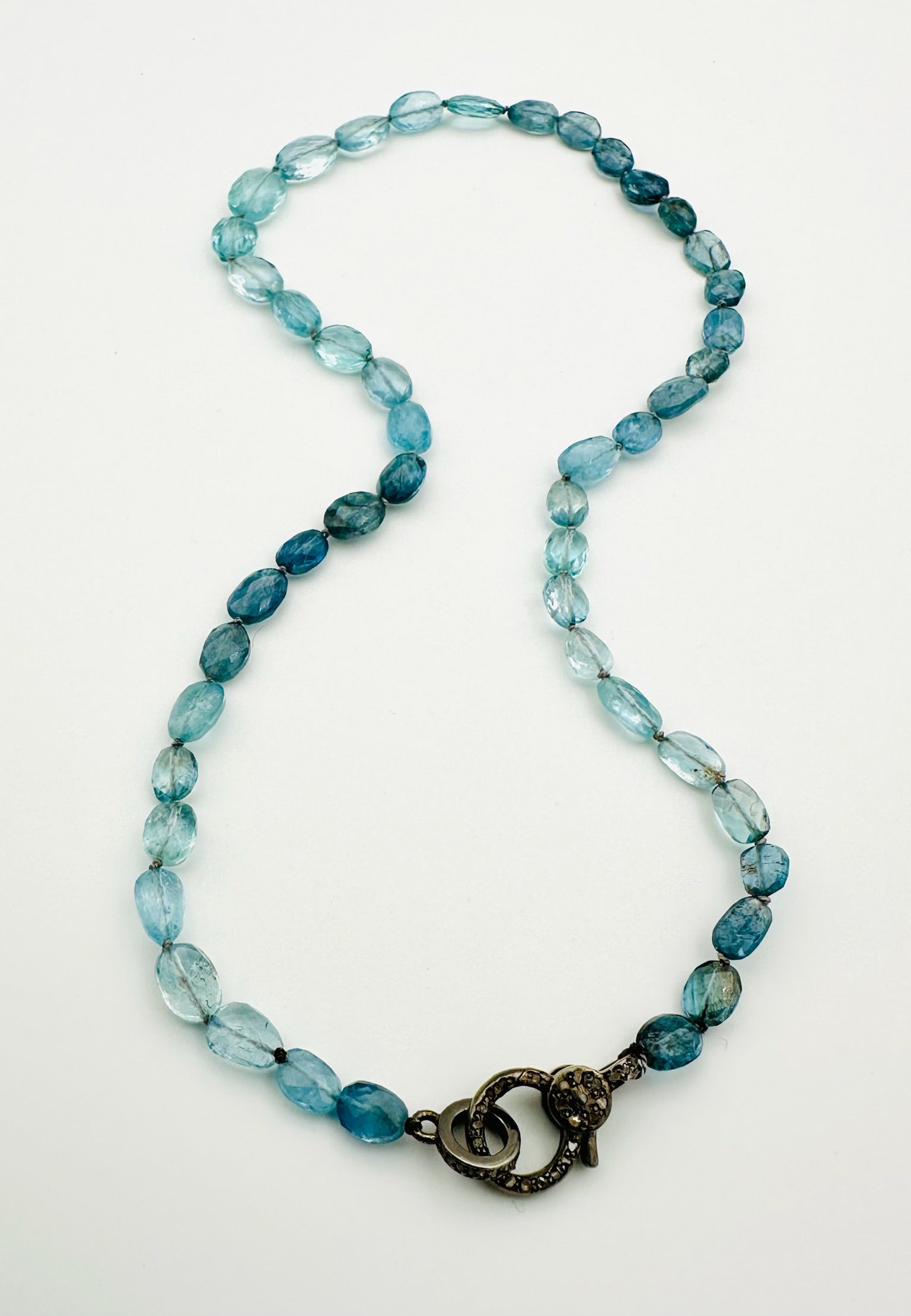 Multicolor Blue Aquamarine Necklace with Sterling Silver Diamond Clasp, 18" Length