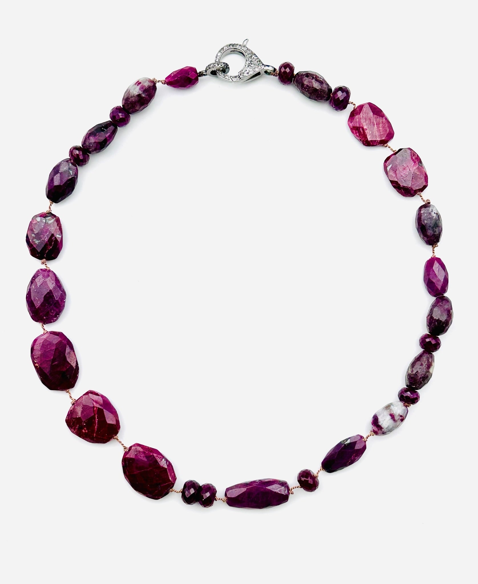 18" Natural and Raw Ruby Mixed Shape Necklace with Sterling Silver and Diamond Clasp