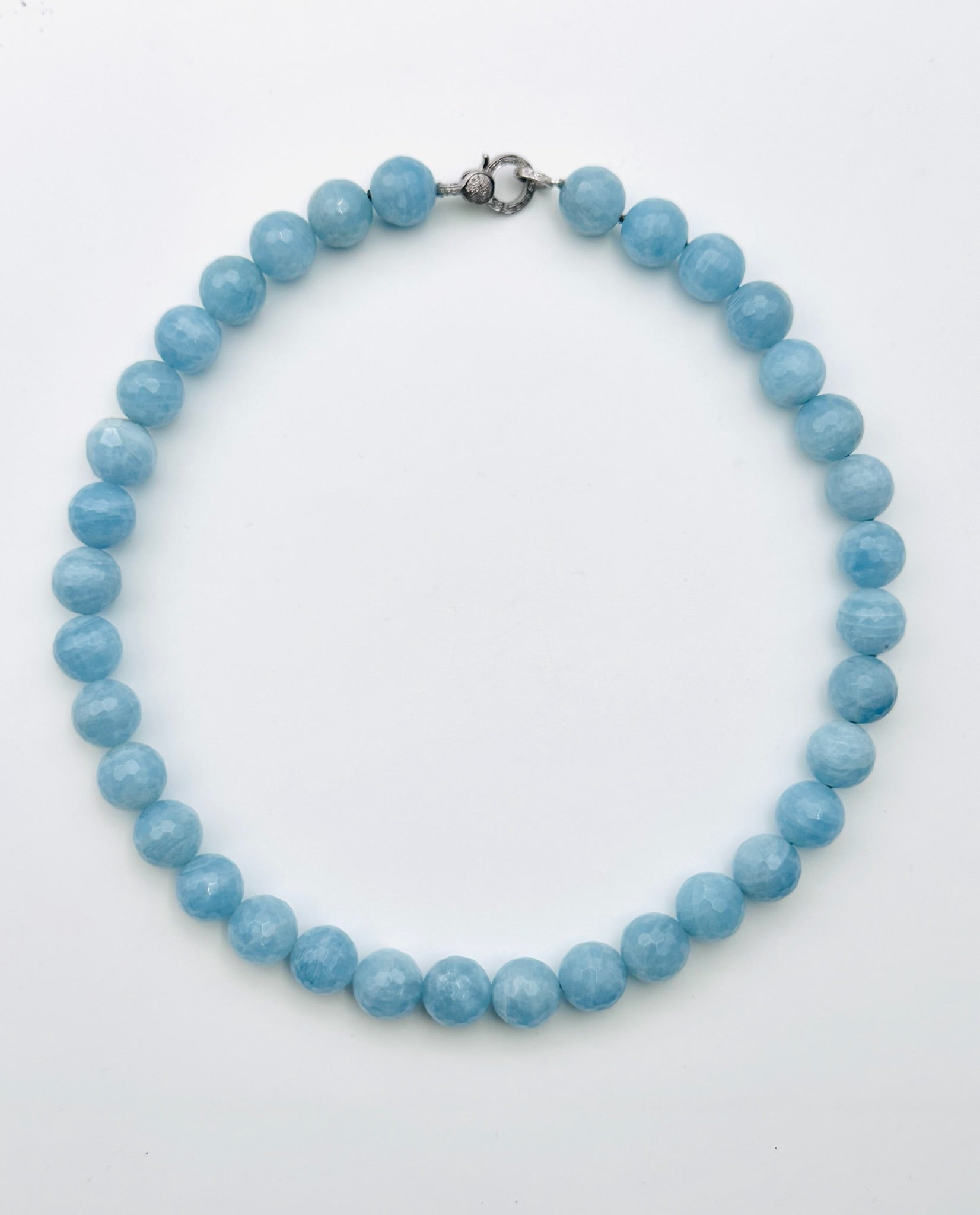 18" Natural Faceted Aquamarine Ball Necklace with Diamond Clasp