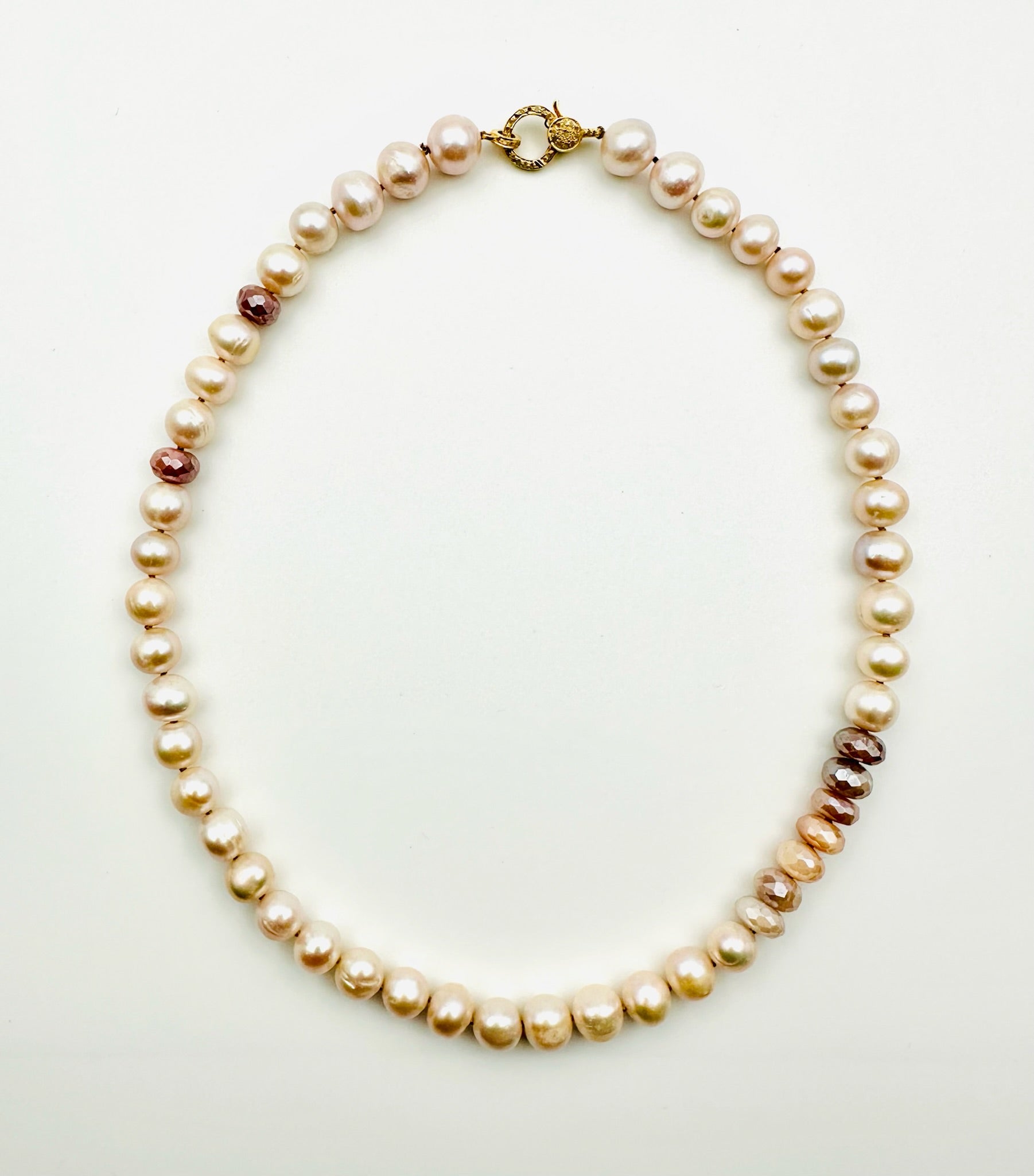 18" Natural Pink Freshwater Round Pearl Necklace with A Multi Moonstone Station Gold Vermeil Diamond Clasp