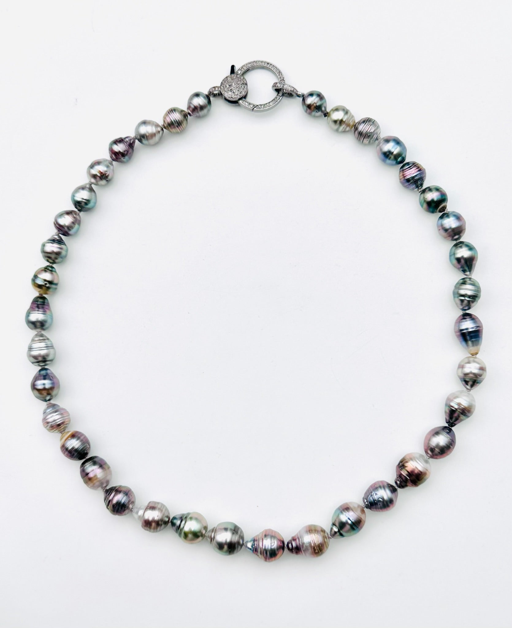 18" Ombre 9.5-11.5mm Tahitian Pearl Necklace with Large Sterling Silver Diamond Clasp